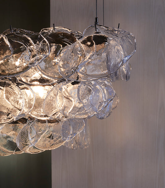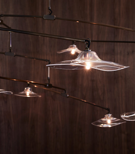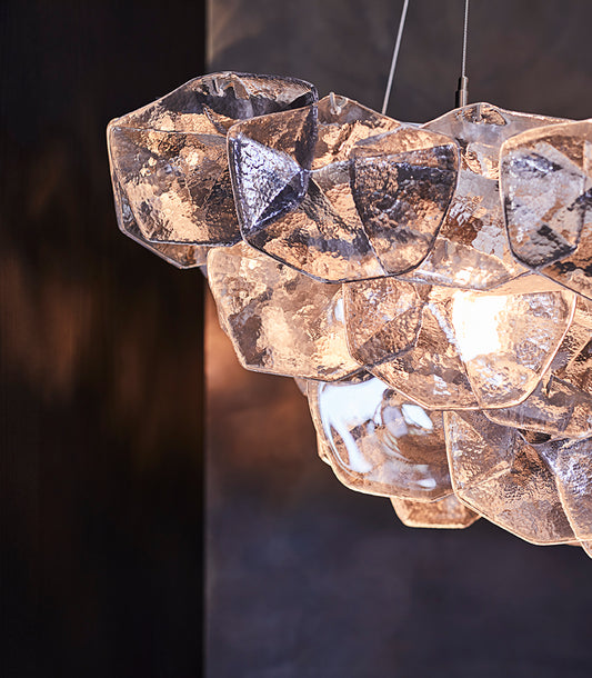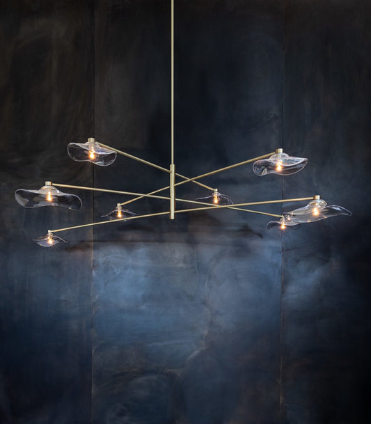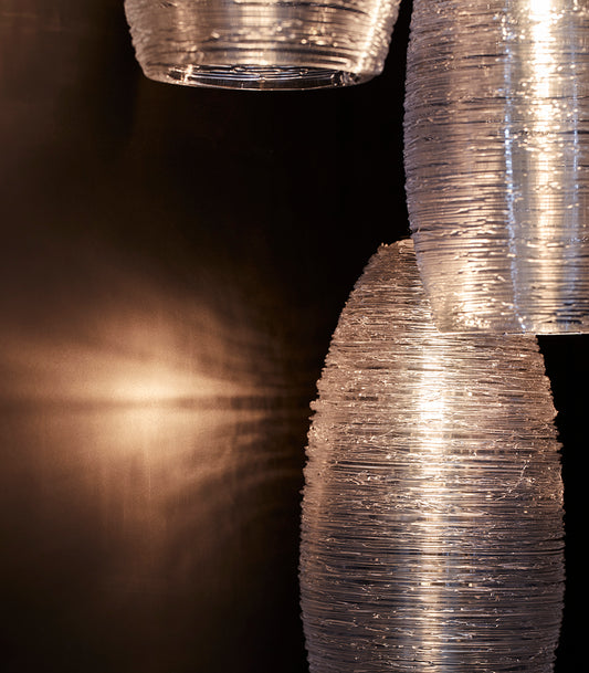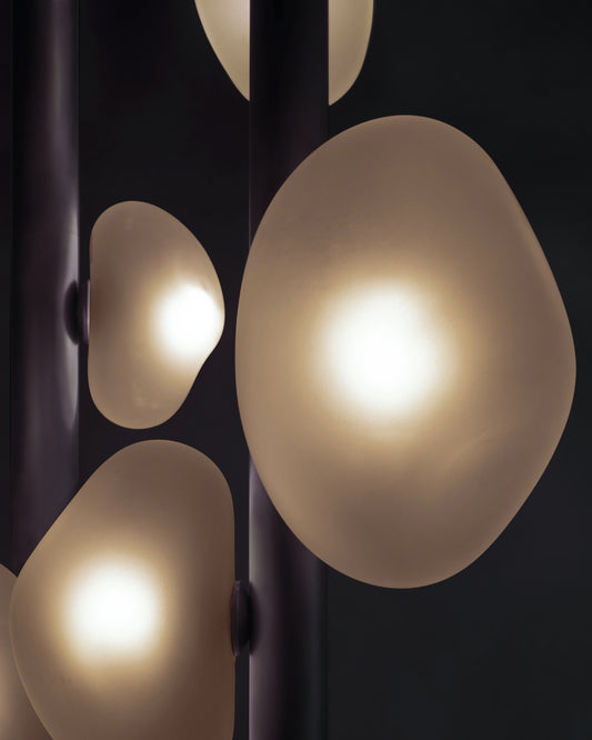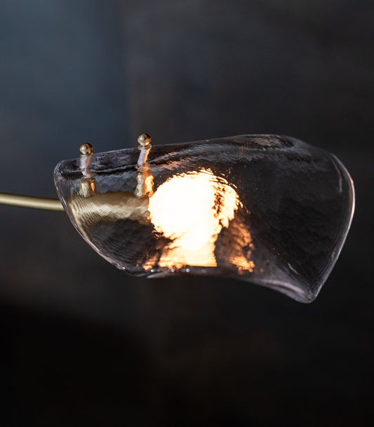 ohn Pomp is a design-driven artisan manufacturer focused on creating abstracted organic works of furniture and lighting. Inspired by elemental materials in transitory states and informed by almost otherworldly natural phenomena, John Pomp’s work combines molten glass, warped metal, and refracted light to create imaginative, organic forms. Led by designer, artist, and glassblower John Pomp with his partner Anne, a team of over 50 creatives design and make each piece from concept to completion in-house. With a sculptural, experimental approach to design, the work develops through a non-linear process explored through various methods, including abstract glass studies, organic form generating, and process discovery. This approach leads to a designed process rather than a product. Each piece is made from scratch in their 65,000 sqft Philadelphia studio using a combination of modern techniques and old-world craftsmanship.