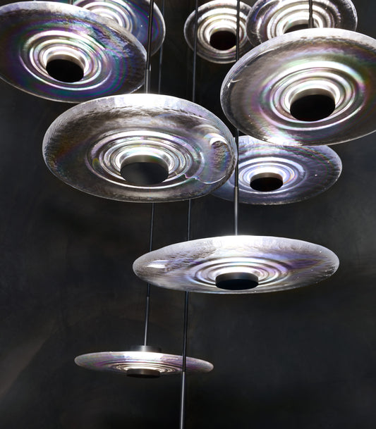 The son of a carpenter, John grew up being surrounded by beautiful things made by his father. While attending Columbus College of Art and Design, he reluctantly registered for a glassblowing class upon the guidance of his high school art teacher, mentor, and lifelong friend. Within moments, he knew that's what he was going to do for the rest of his life, reminding him of the creative actions and flow states he experienced while skateboarding and action painting. This passion for molten glass and love for the fire has been a driving inspiration through his thirty years mastering the art of glassblowing. Since 1999, John has grown his multi-disciplinary studio to a crew of over fifty creatives that help him make his lighting, furniture, and sculptural objects. More recently through surfing, John has discovered a love for the ocean, which has brought him full circle to that first encounter with molten glass. He is now creating bodies of work inspired by the fluidity of both fire and water and finding their place in the universe - as well as his own.