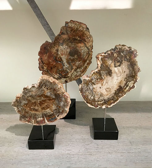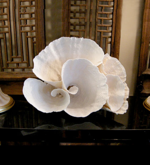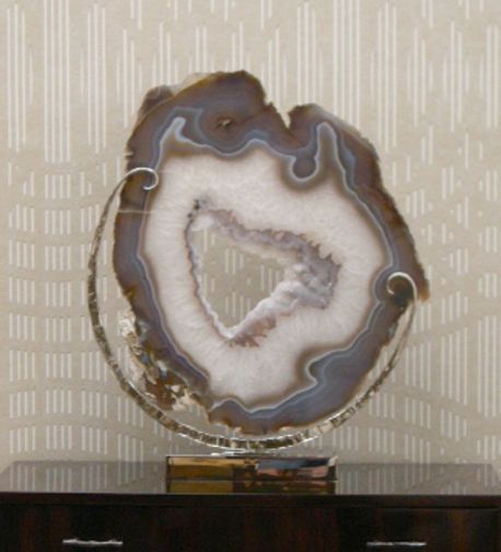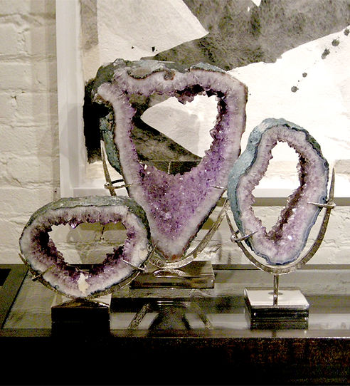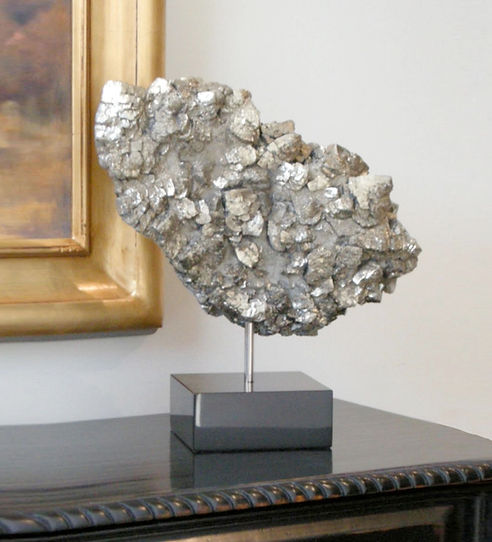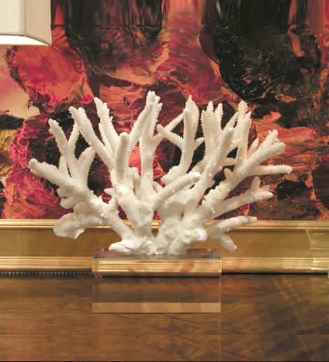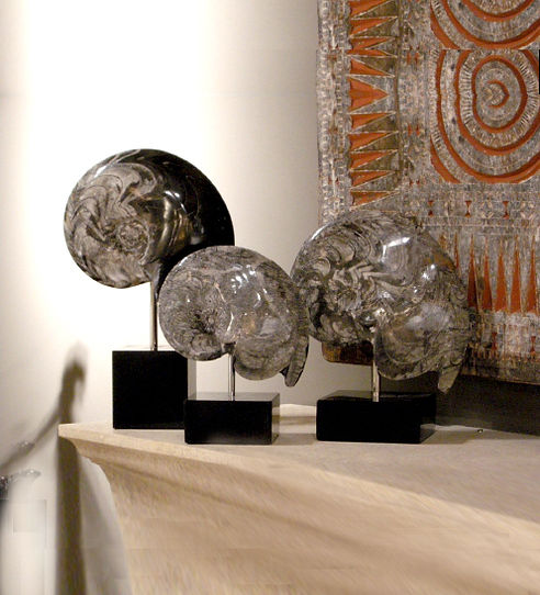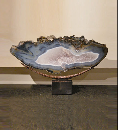 The unique beauty of every piece in the SPIRALE COLLECTION radiates through naturally occurring variations in color, size and the individual structural components of every mineral, fossil and coral. Each one-of-a-kind treasure is designed with harmonious materials: supports are polished nickel and weathered copper, and mounts are architectural bases of black marble, fossil stone or polished acrylic.