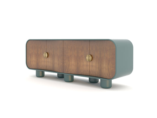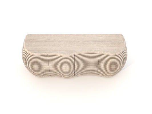 SERPENTINE CREDENZA FRENCH ASH WITH WOOD TOP