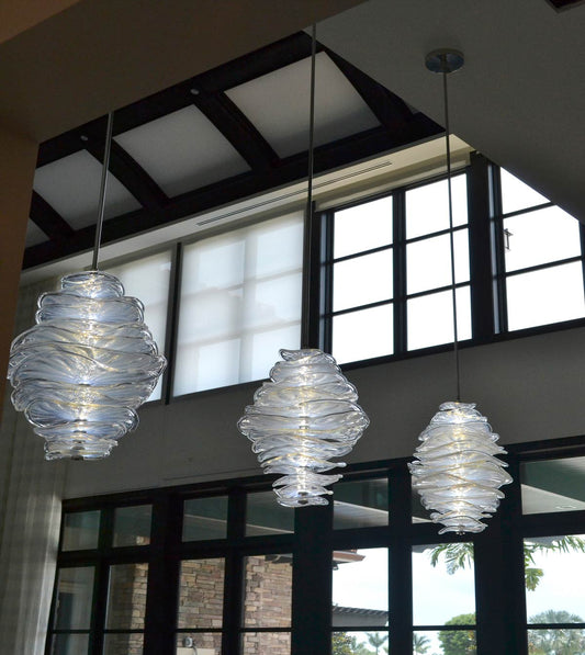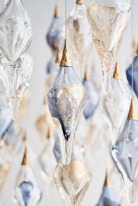 Because customization is an integral part of the unconventional and intuitive and process that sets Studio Bel Vetro apart, Lisa and Paulo work closely with designers and architects worldwide to offer lighting creations that can be uniquely configured for the space they will inhabit. Piece by piece, the final arrangement is intricately constructed and intuitively placed, to engage the eye and capture the imagination.