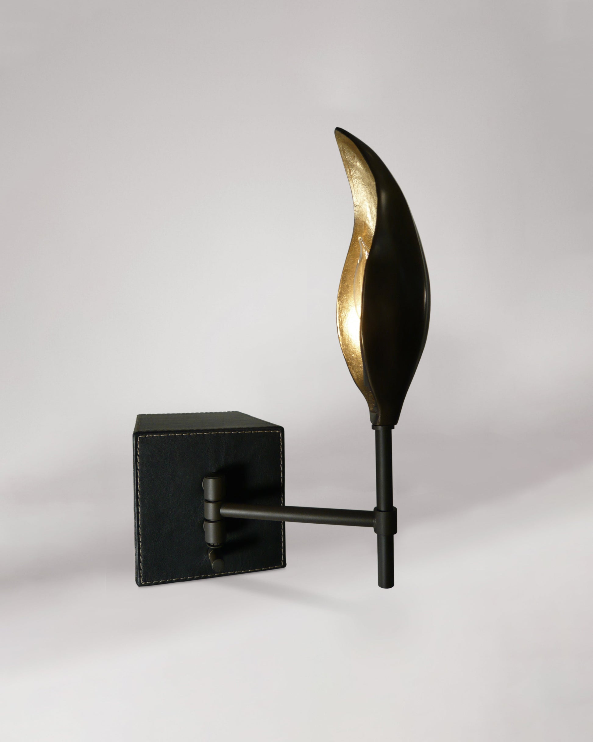 Cast Bronze Pod with Gilt Interior and Leather Box