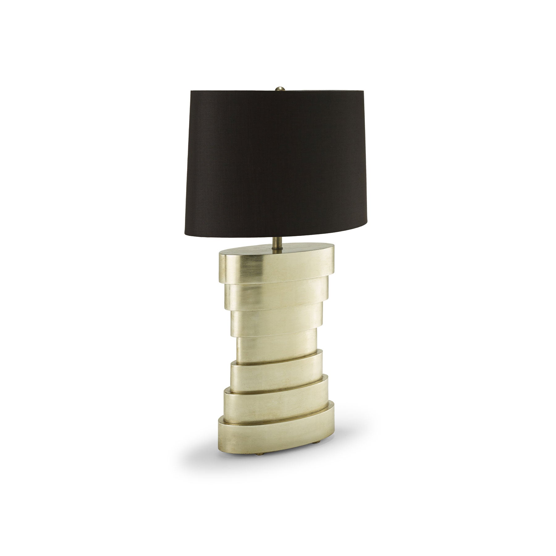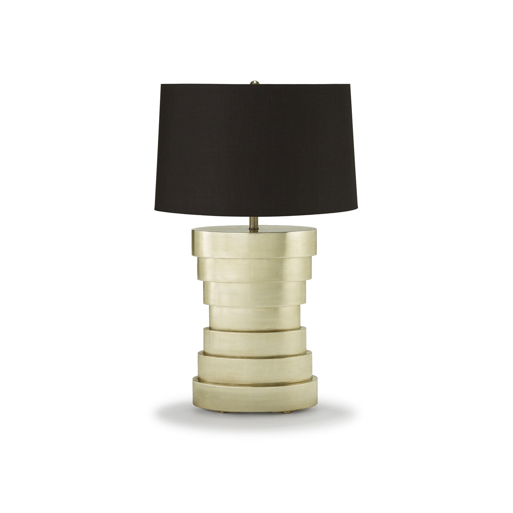 This transitional lamp was designed to look like stacked discs. When the light is on, the water gilded layers glow; they catch the light perfectly and reflect it into the room. The whole base glistens.