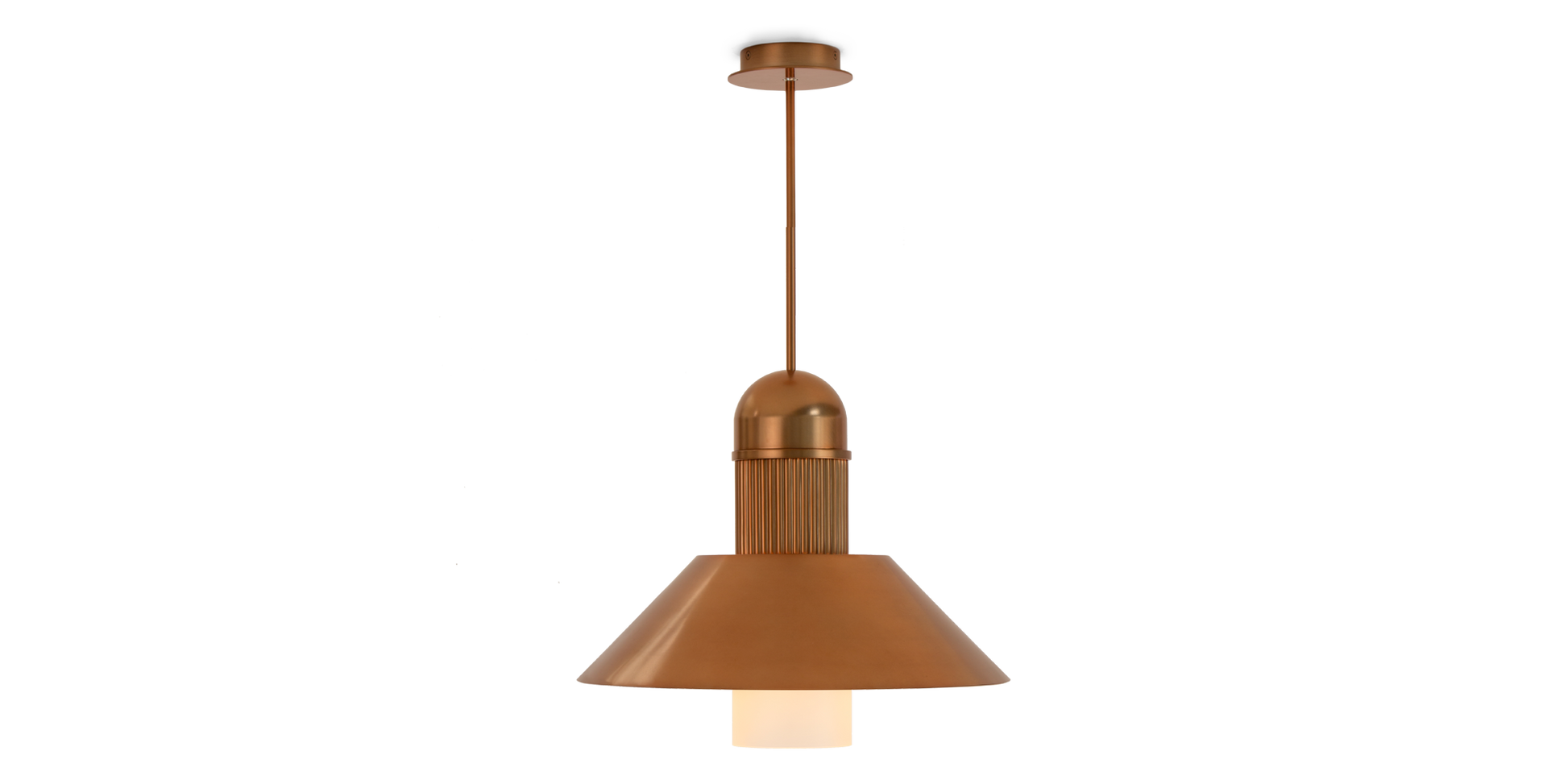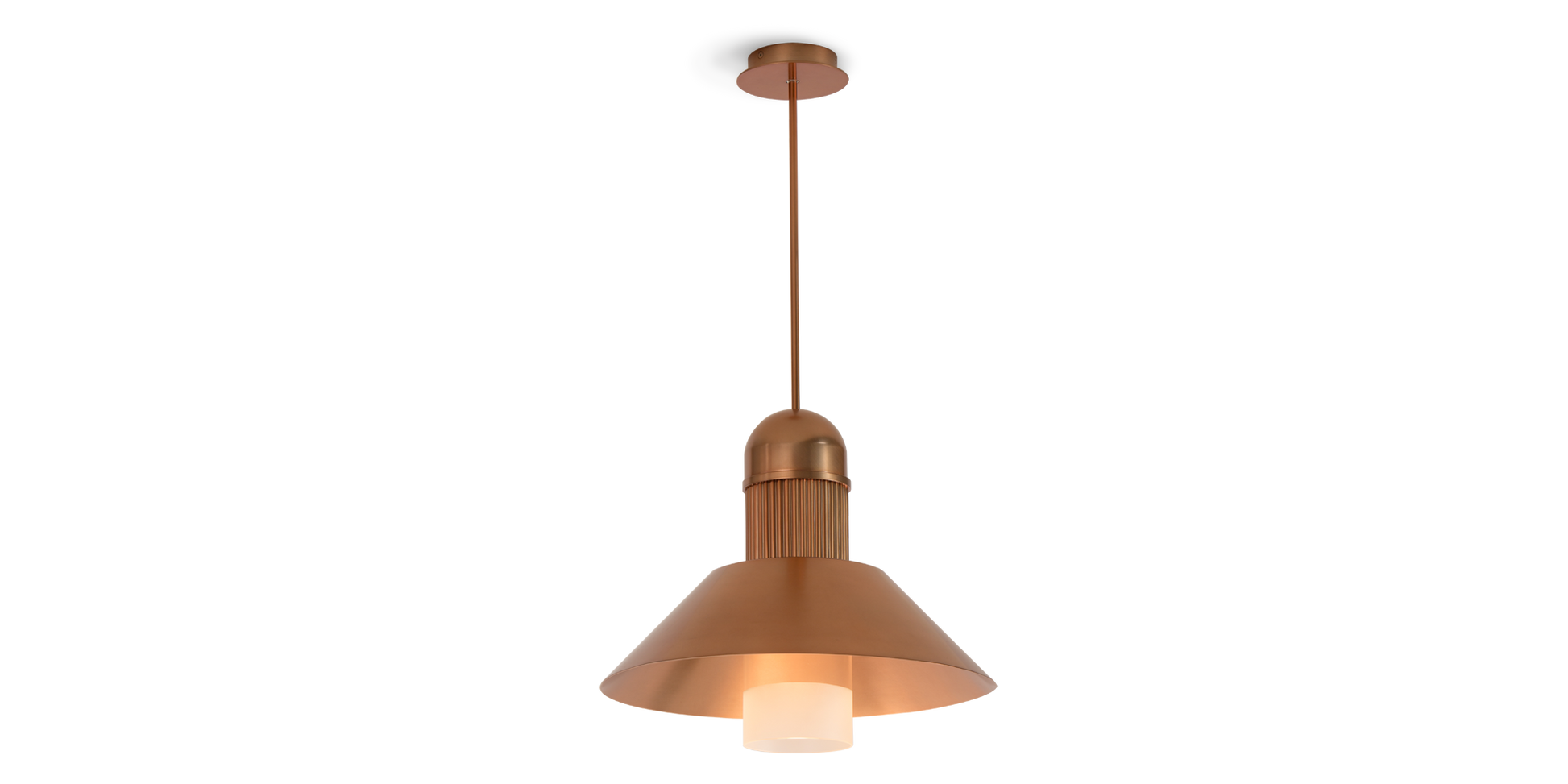 Inspired by a traditional fishing lantern, the Arezzo Pendant offers a note of mystery with its wide canopy, vertical glass tube and recessed light source.