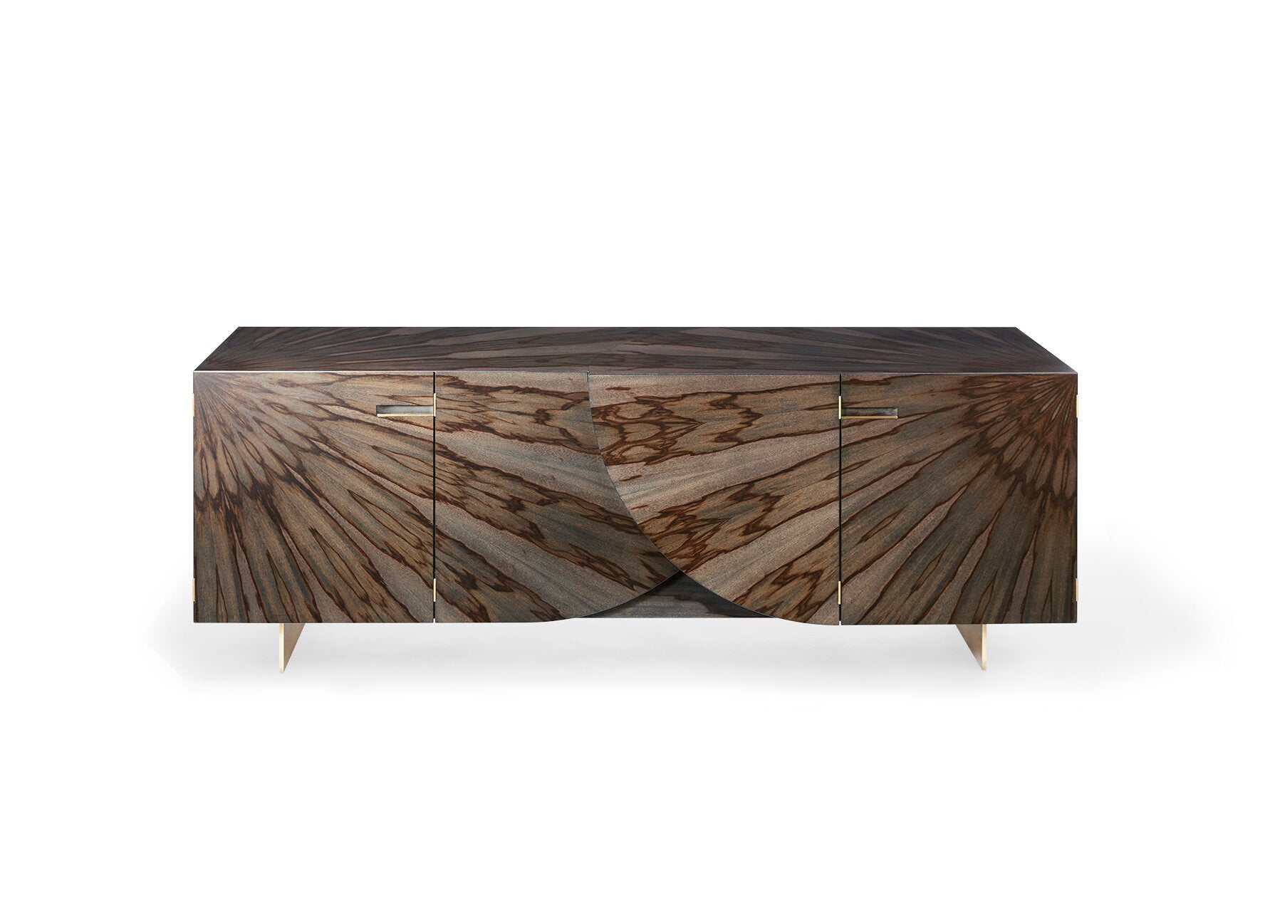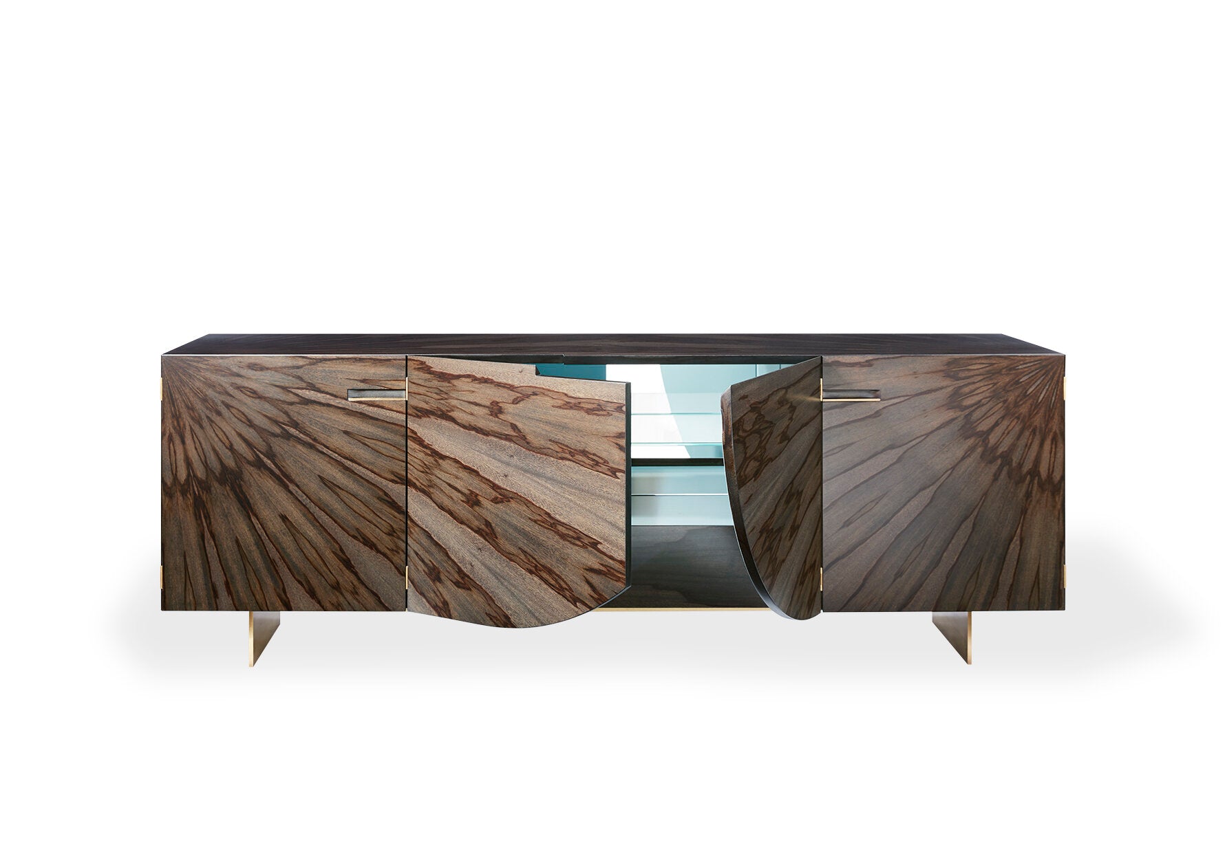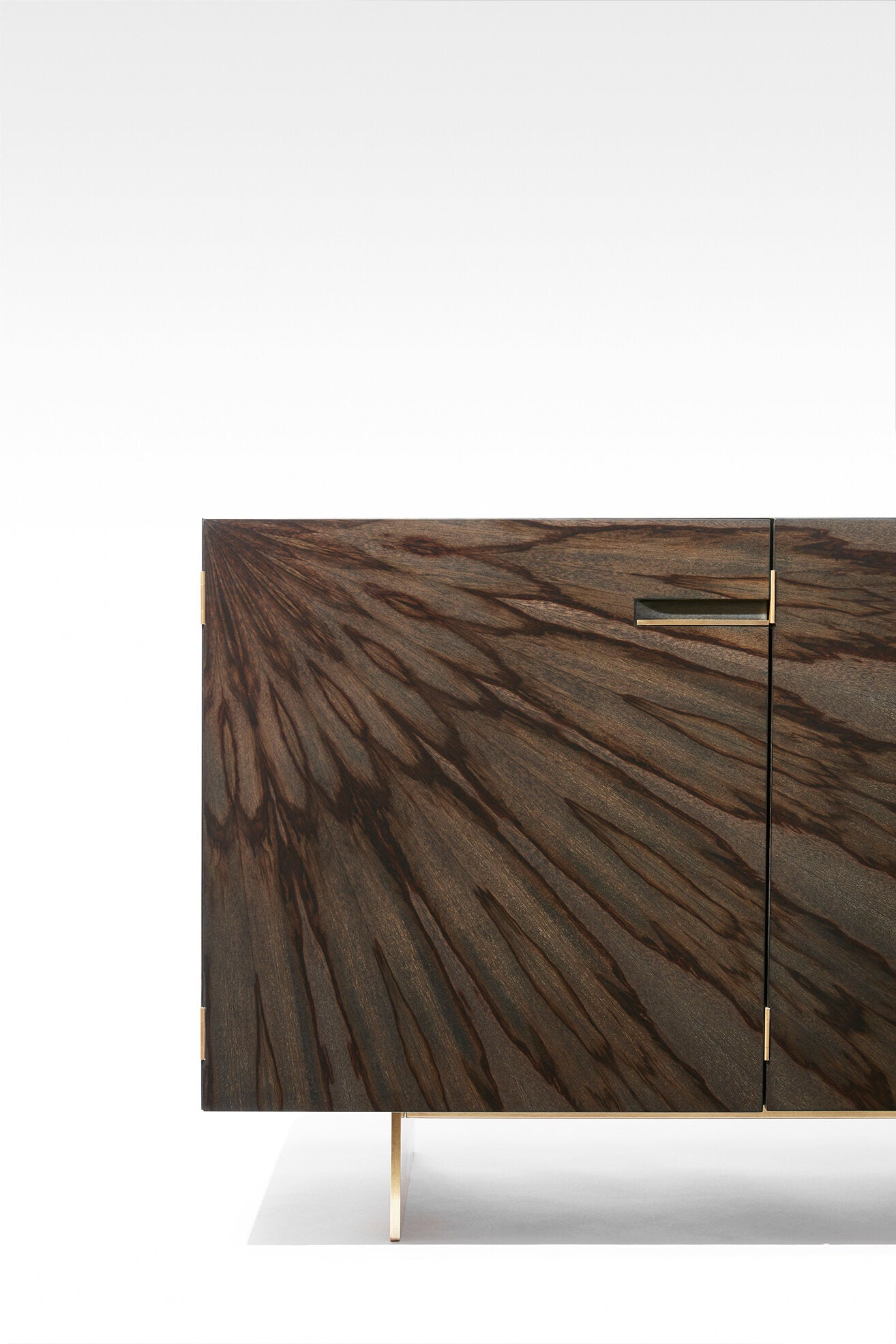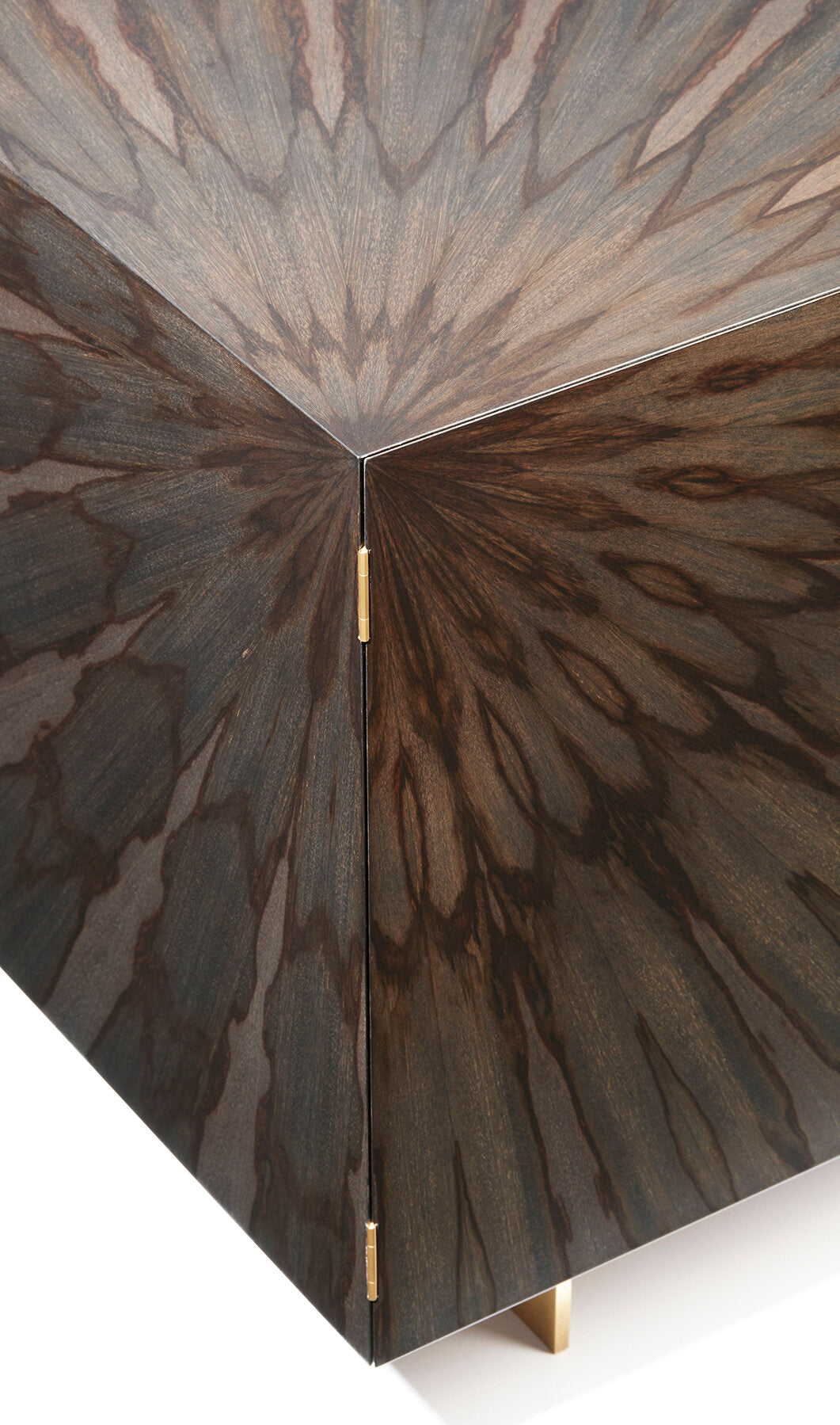 Top in tinted Dogwood 68-2014 with a satin finish, interior in Bleu Orage lacquer, feet and handles in stainless steel with a Bronze Médaille finish.