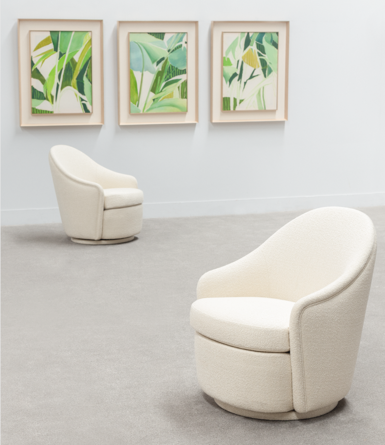 Augustin is a variation on our Augusto armchair, which itself revisits the iconic lines of the club armchair, a round armchair with a deep, enveloping seat. Augustin has a rotating base, which adds a practical dimension to the design, allowing you to sit comfortably in any direction.