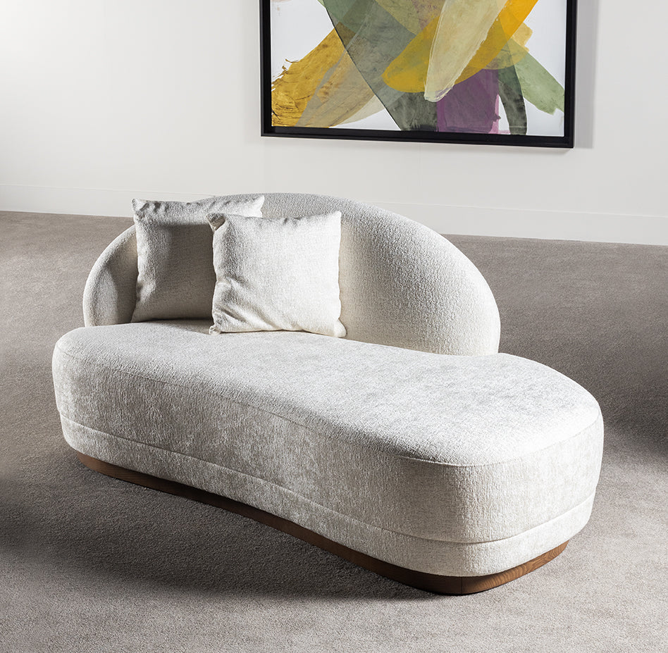 Barbara Chaise Longue embraces the curved aesthetic while retaining a fairly conventional shape. A more transitional model that lives somewhere between the classic and the modern, it hopefully achieves a certain timelessness. The depth of the seat and the subtle curves add elegance and finesse to this comfortable seat. Designed to fit into any space, it's perfect for combining with sofas, poufs, etc.
