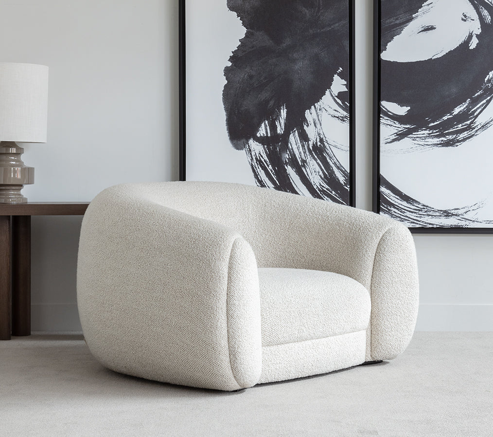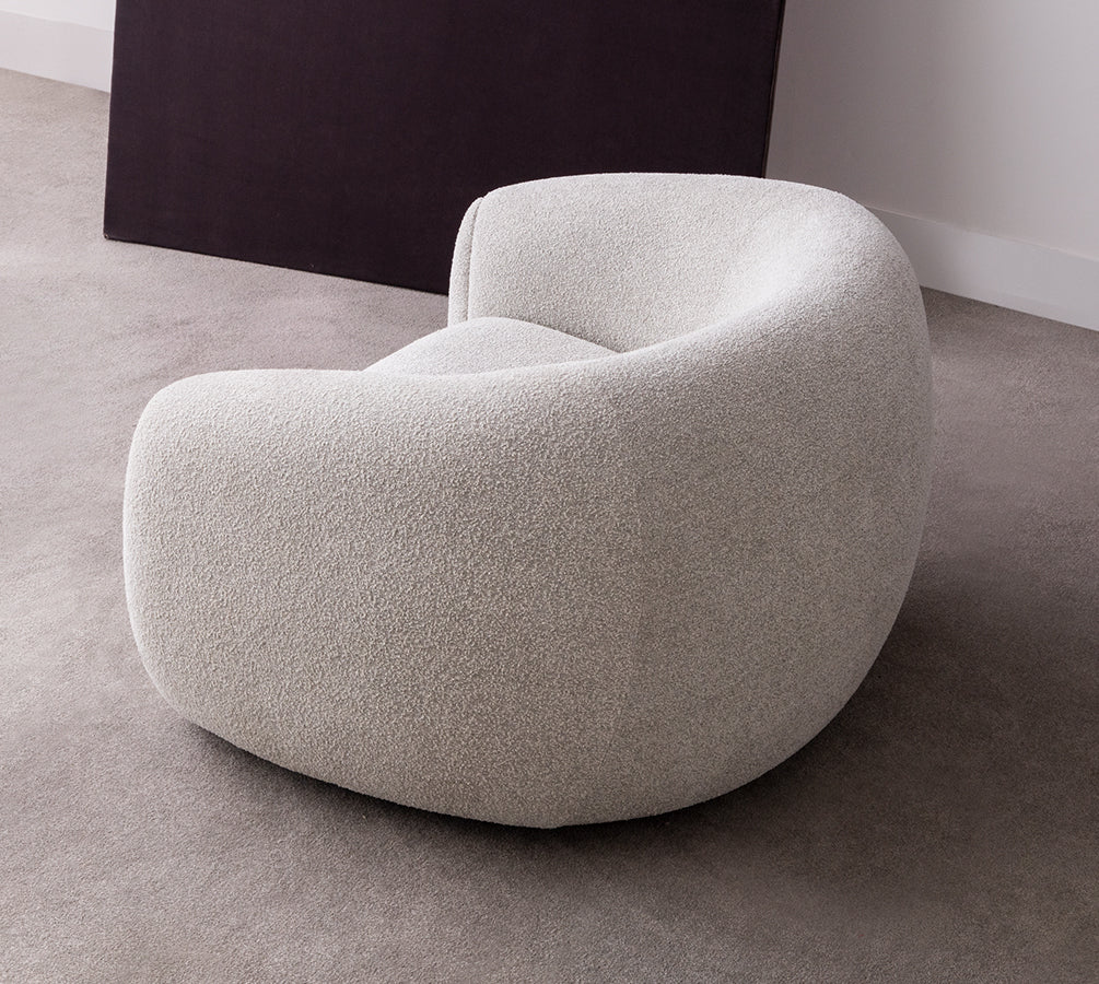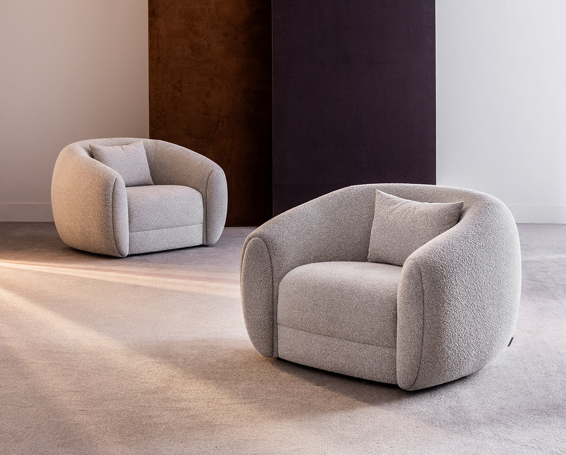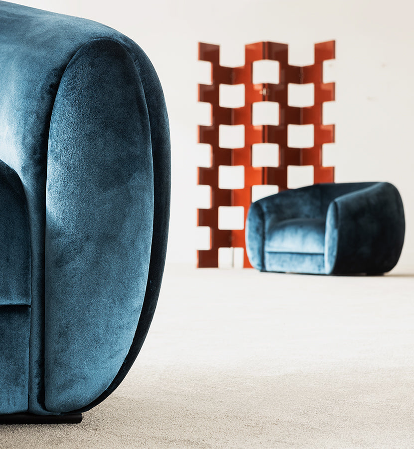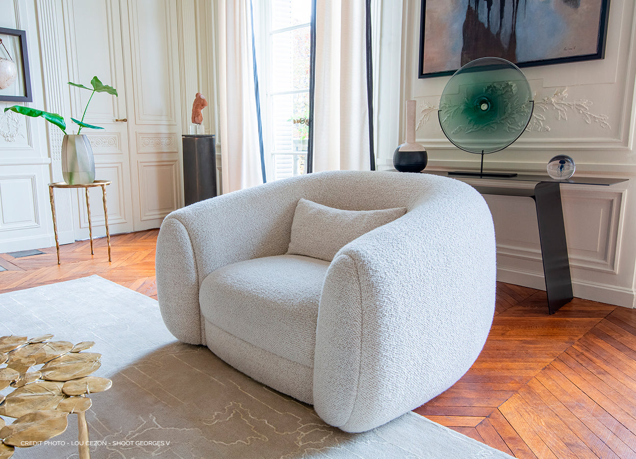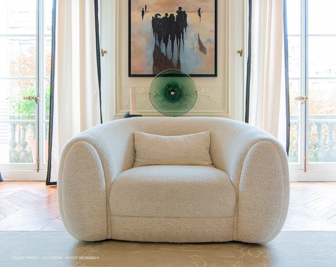 A thick, robust, and warmly enveloping structure, with its rounded shape, frames a large, curved seat placed on a base with invisible feet. The Barnabas armchair embodies a certain "Art de Vivre": voluptuousness, luxury, beauty, relaxation and sharing.