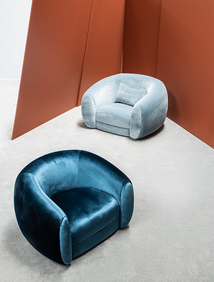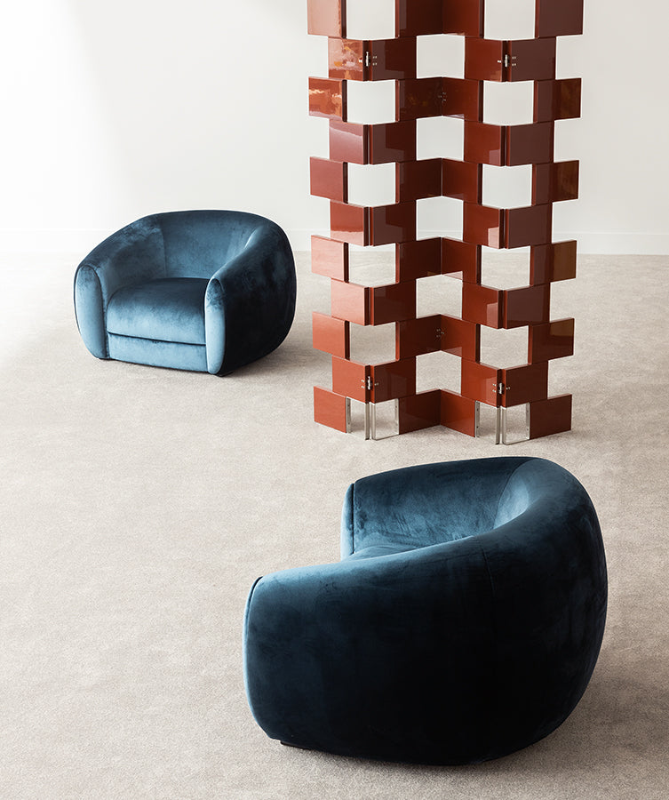 Inspired by the movements that began in the 1930s and 1940s, Barnabas armchair has reinvented its lines and proportions to suit the 21st century. It is an invitation to comfort, with its generous curves. Available in two sizes (L & S), it can be adapted to a variety of spaces and projects. And with a rotating base, it’s also quite fun!
