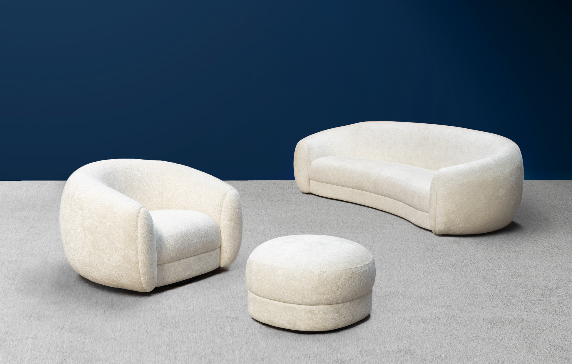 The Barnabas range includes sofas in different shapes and sizes, armchairs, and poufs.