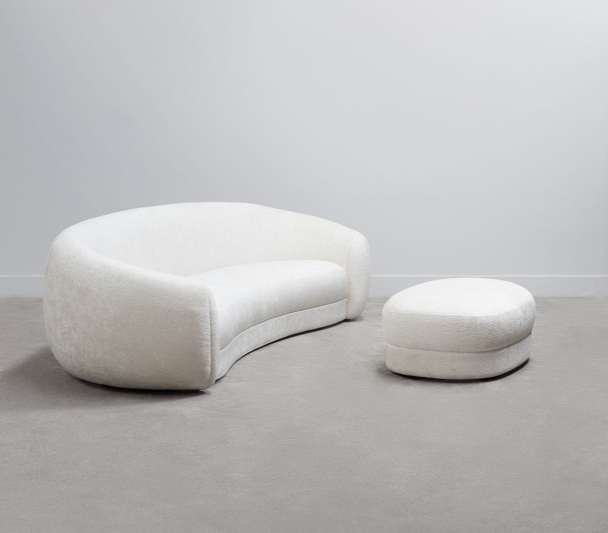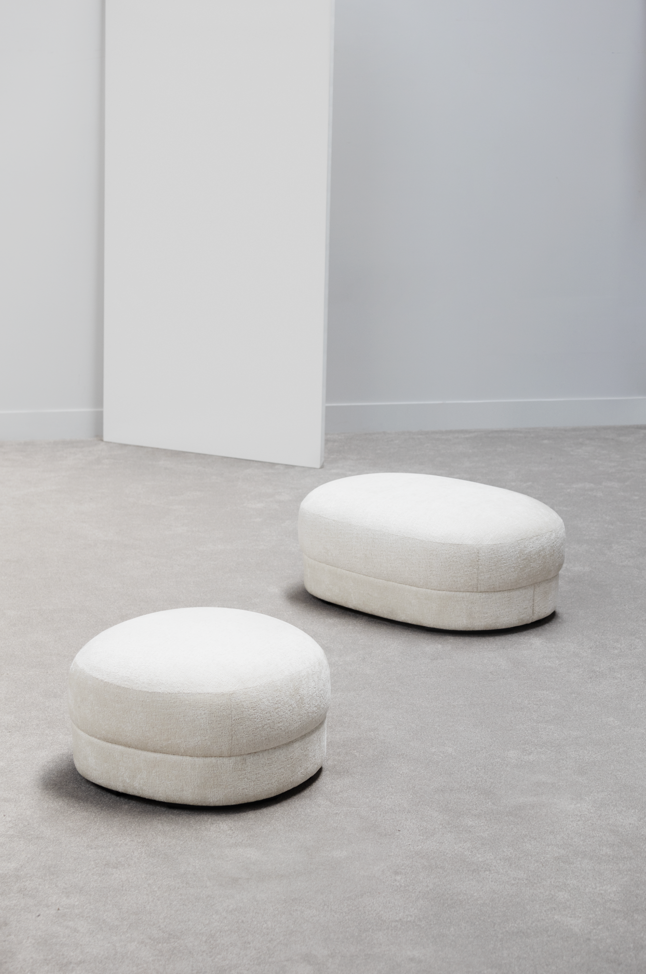 A rounded seat placed on a base with invisible feet. The Barnabas pouf embodies a certain "Art de Vivre": voluptuousness, luxury, beauty, relaxation and sharing.