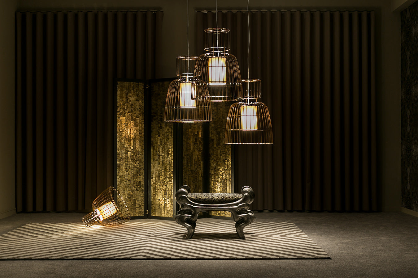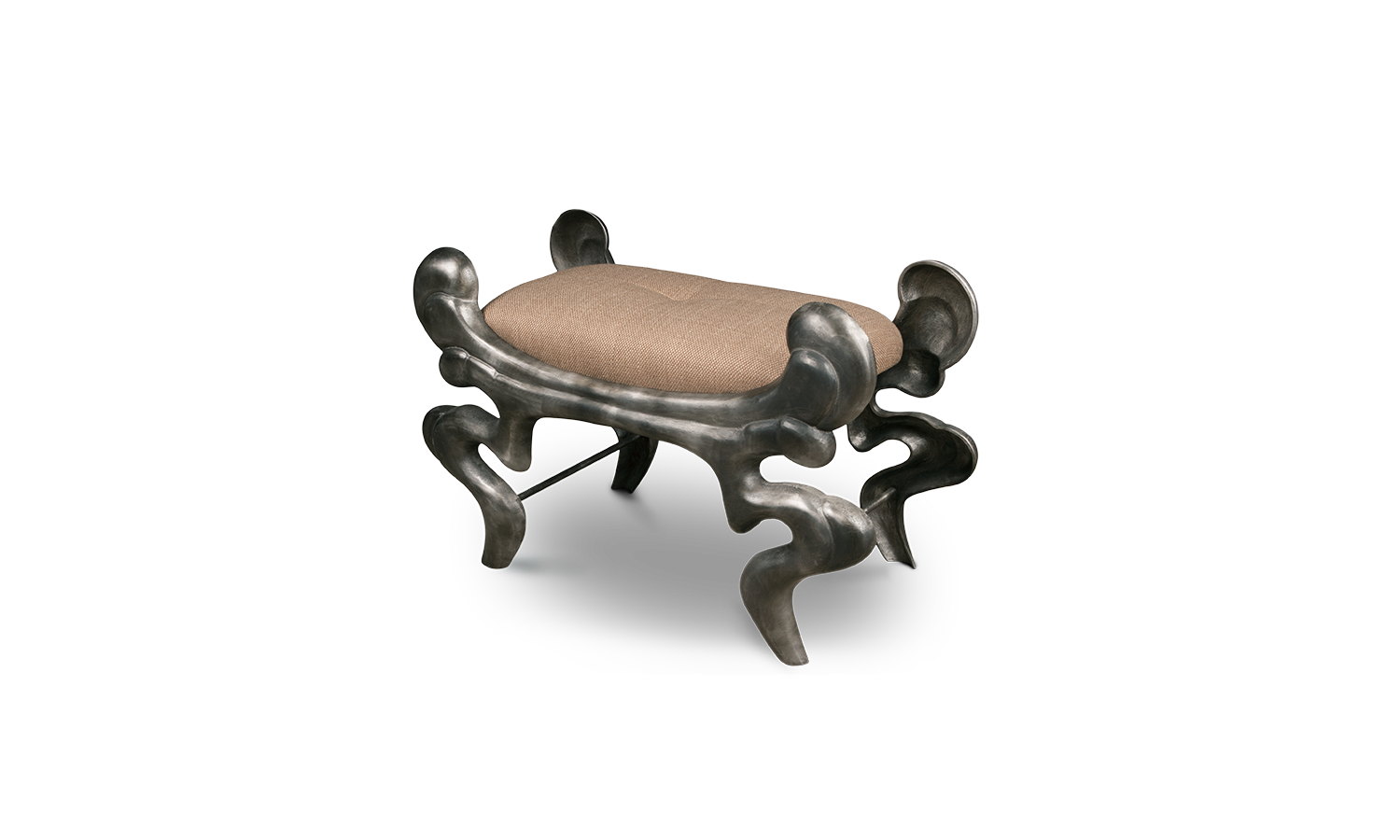 This decorative pouf has a cast aluminium structure. It is available in Cat I-VI fabrics and leathers (0,7m / un.) and is possible in customer’s own material.