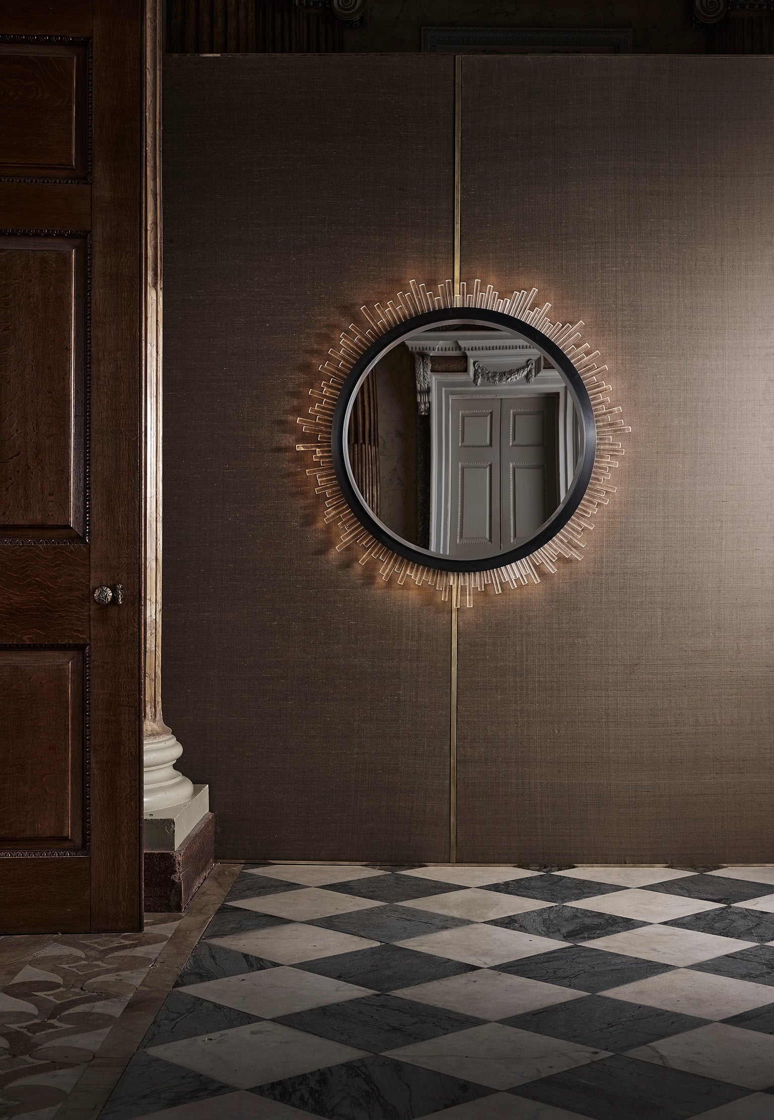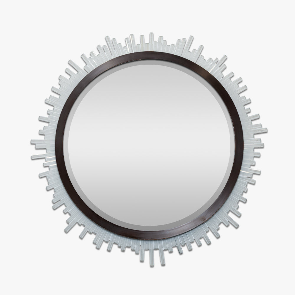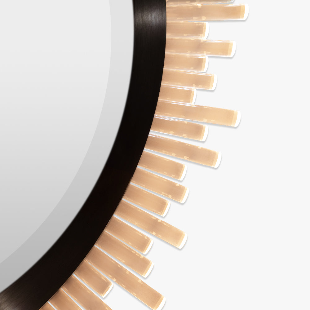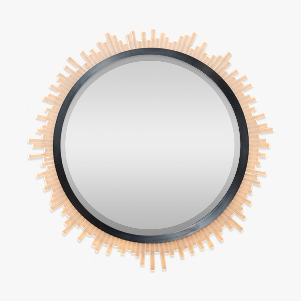 Comprised of sporadic or straight Lucite rods, this mirror is another contemporary addition to the Belgrave Square family from the Mayfair Collection. This ornate mirror can be lit by a long LED strip positioned above the Lucite rods to create a beautifully warm lighting effect which reflects off the distressed glass.