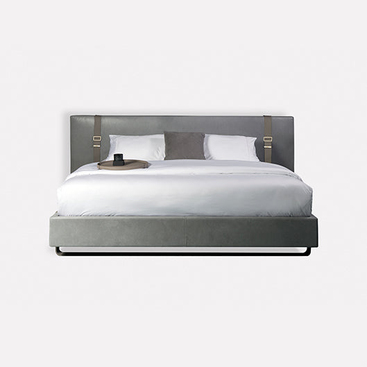From the BOND Collection – introducing the BOND bed. This fashionable highlight of your bedroom invites you to rest and lets your mind fantasize. The diligently crafted headboard and bed frame are elevated by custom belts and buckles that serve as legs and provide an intriguing touch to this bed. Fabric, Velvet, Lux Fabric, Leather, Nubuck, Lux Leather.