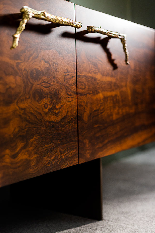 This is a stunning storage piece that is as practical as it is aesthetically pleasing. Made with imbuia veneer, it showcases natural beauty through this very organically textured material.