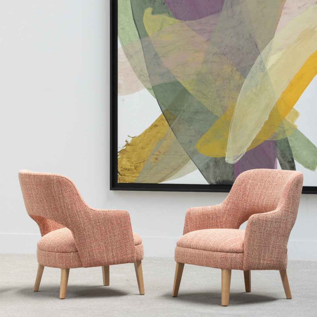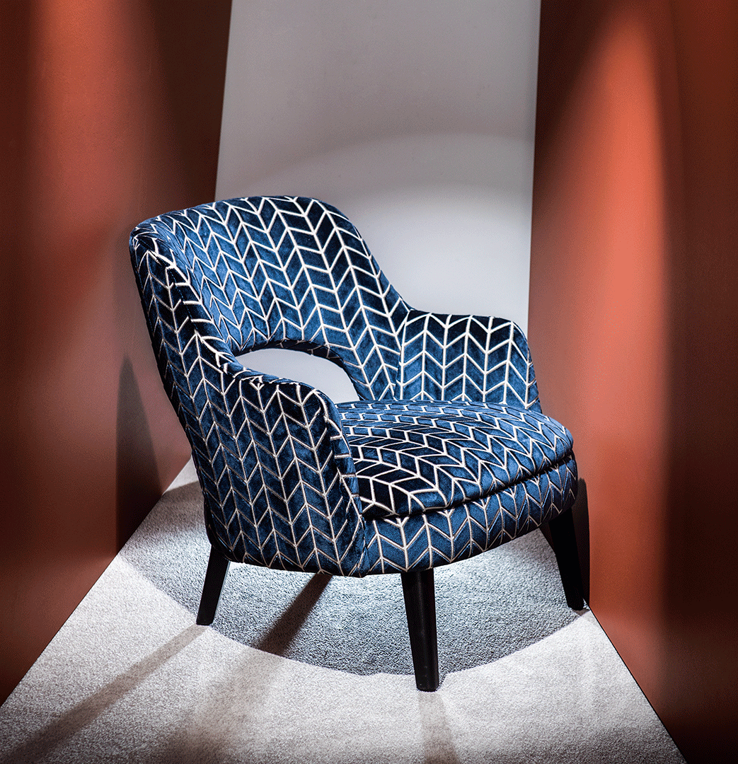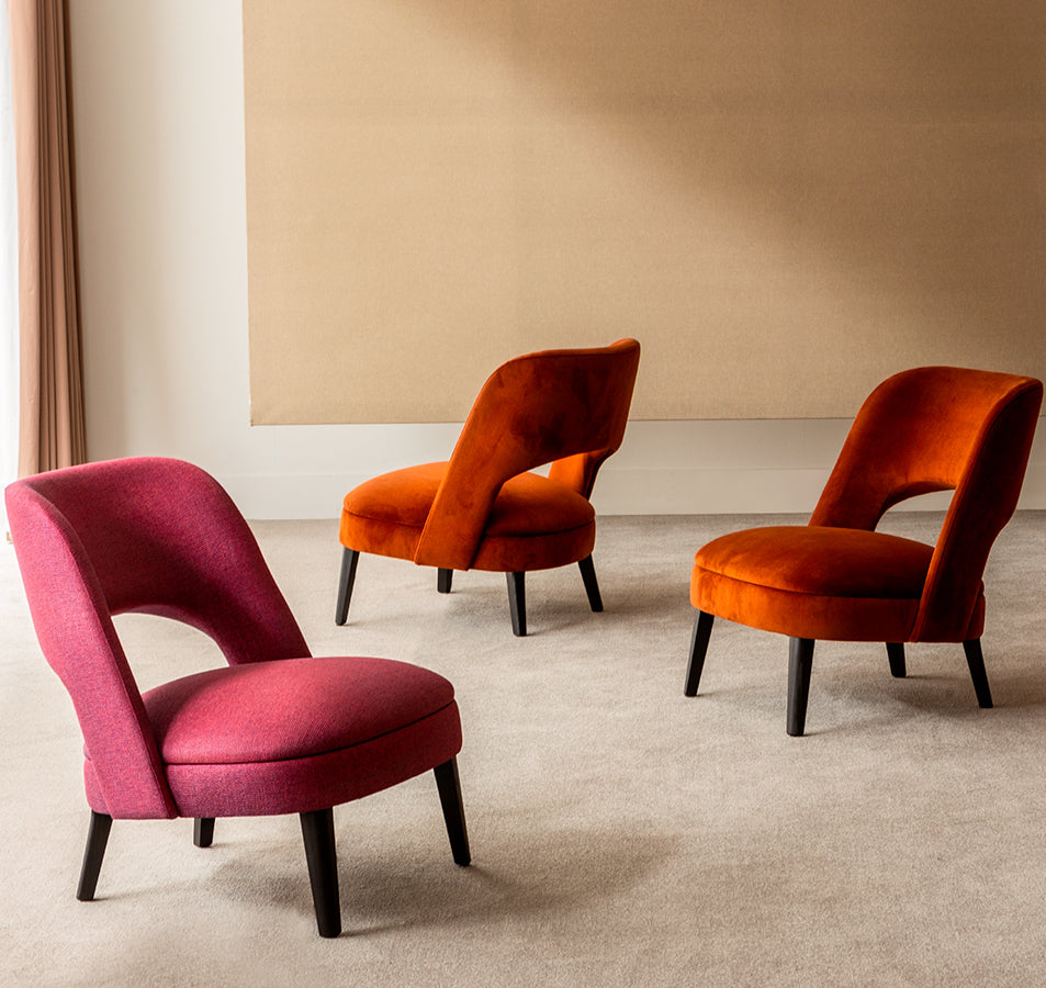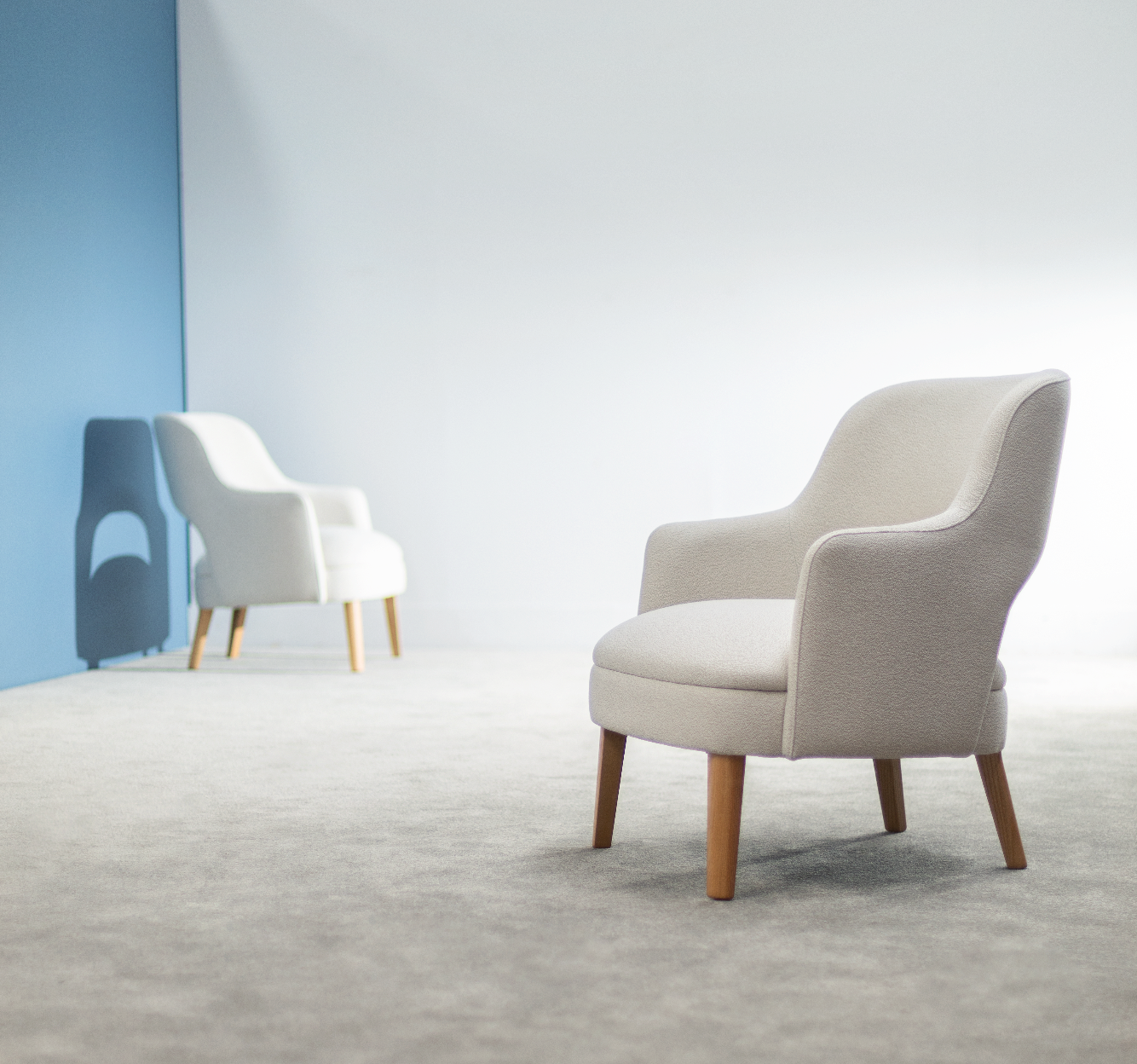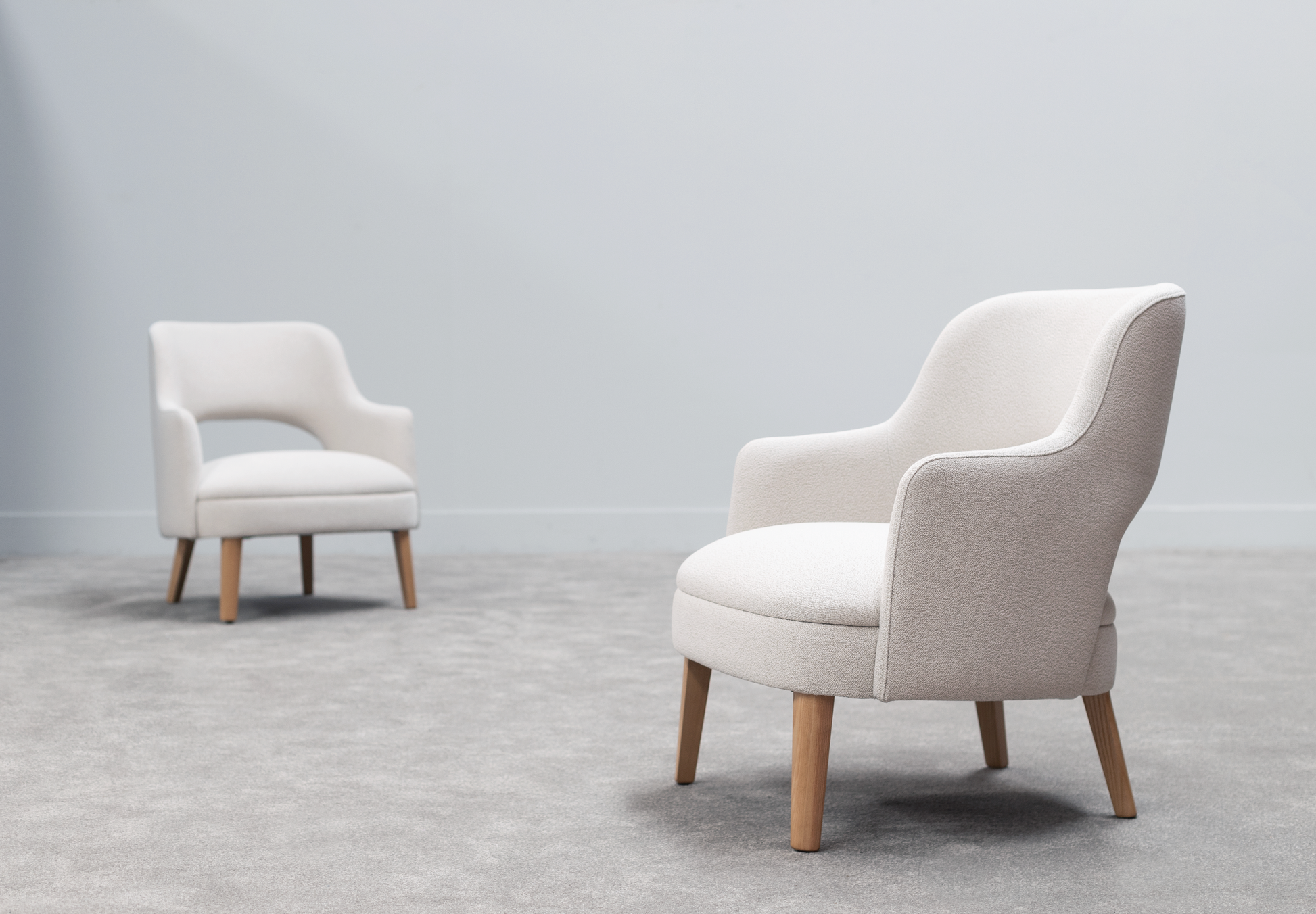 This lounge chair is available with or without arms, has a solid wood structure and legs in standard finishes. Several leg finishes available along with Cat. I-VI fabrics and leathers (2,8 m / un.). Customer’s own material is also possible.