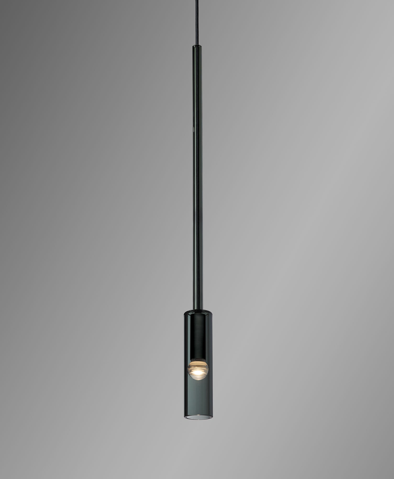 The Charlot Pendant is made from smoked borosilicate glass. The ceiling plate and socket cover are machined and polished by hand from solid brass.