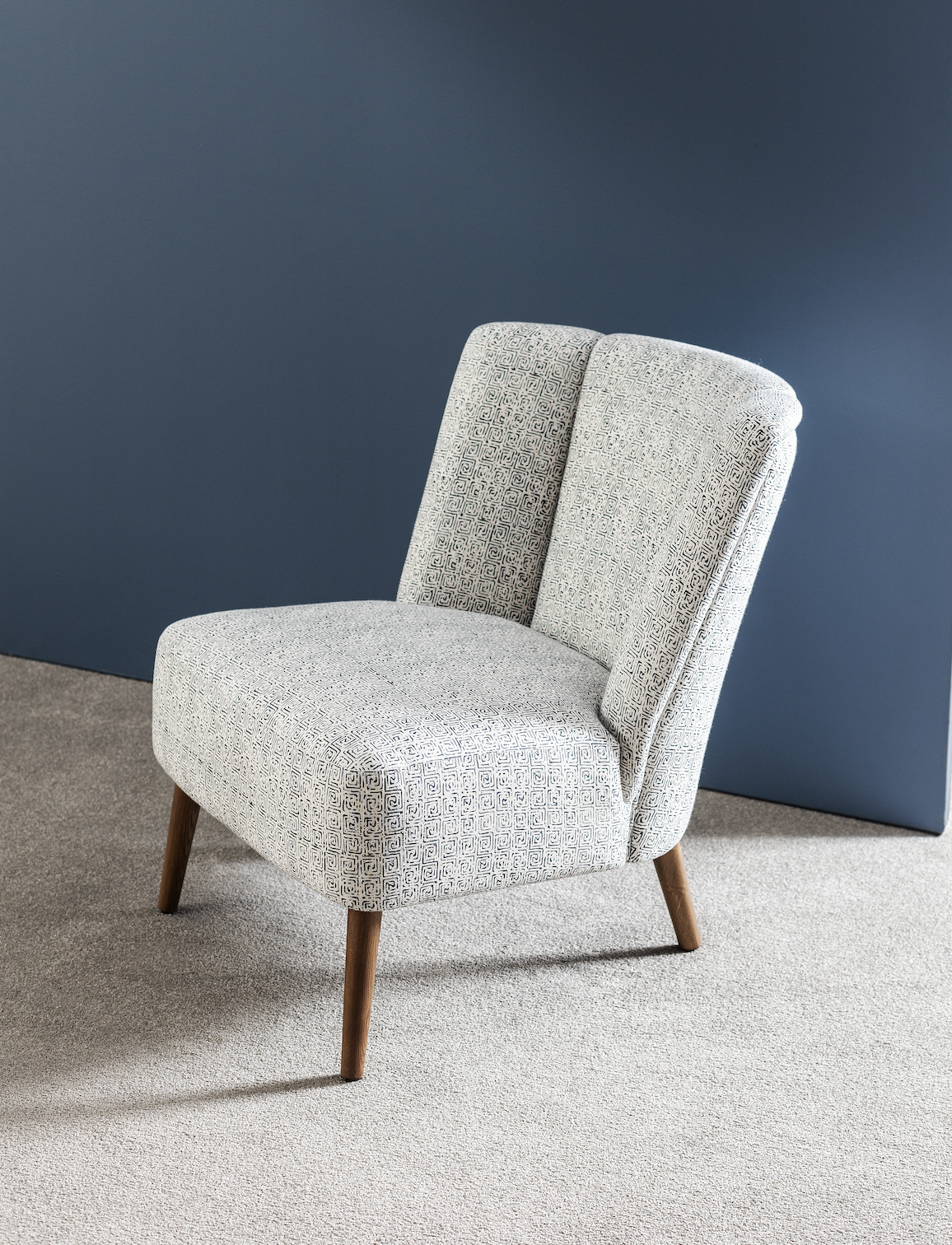 A graceful and petite lounge chair, Colette is an ideal addition to any space when a small footprint is needed for one or two chairs.