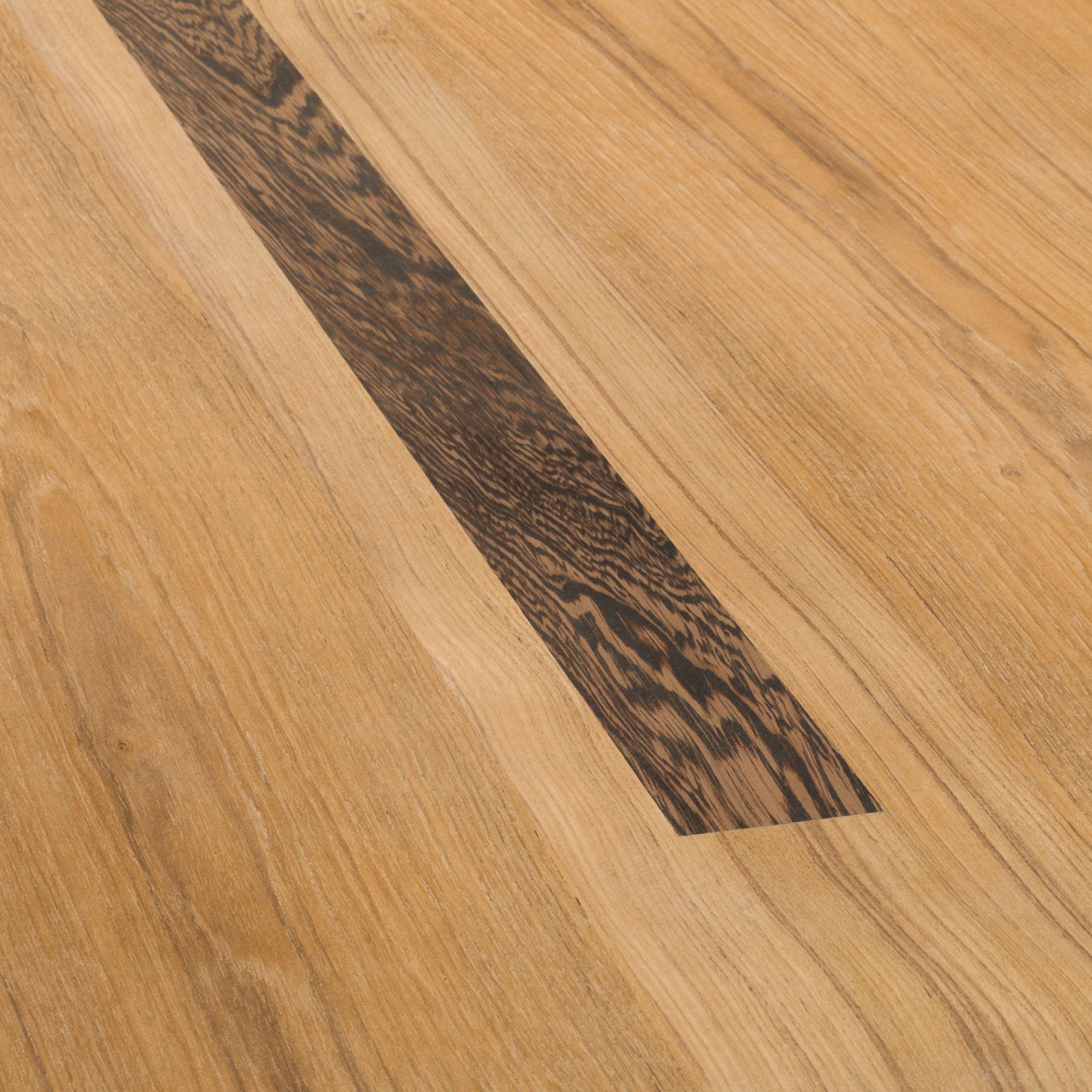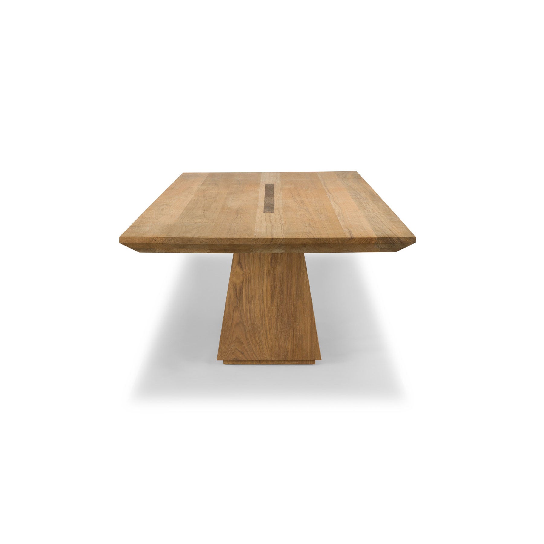 This table was originally custom-designed for a house in Mexico, near the Sea of Cortez. The table reflects Nimmo’s fascination with triangular elements. The entire table is made out of teak wood, except a darker wenge inset running down the middle of the top. This table can also be made as a coffee table and end table.