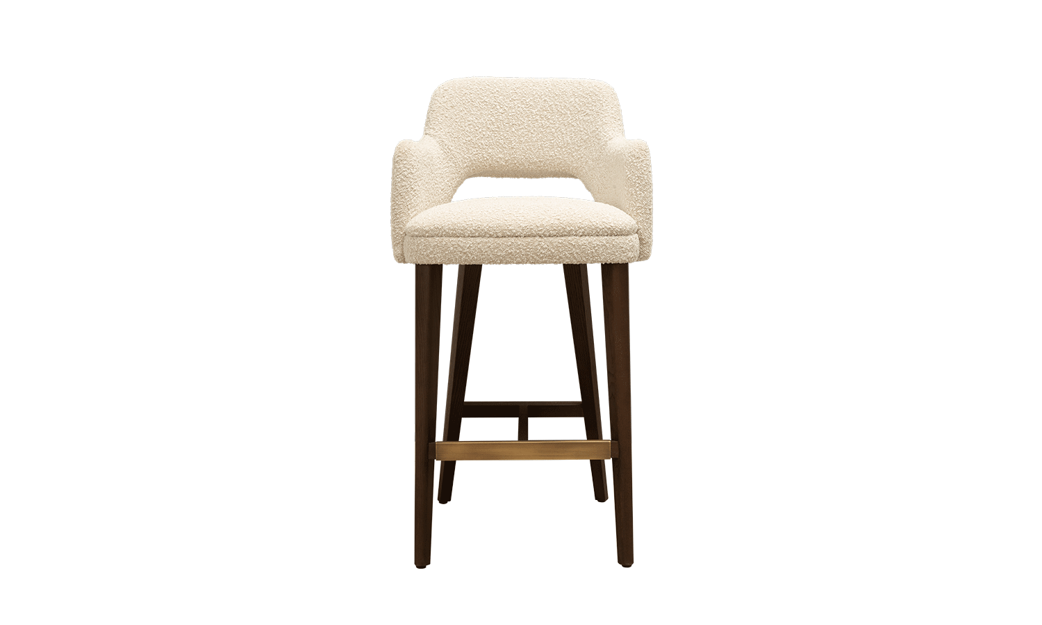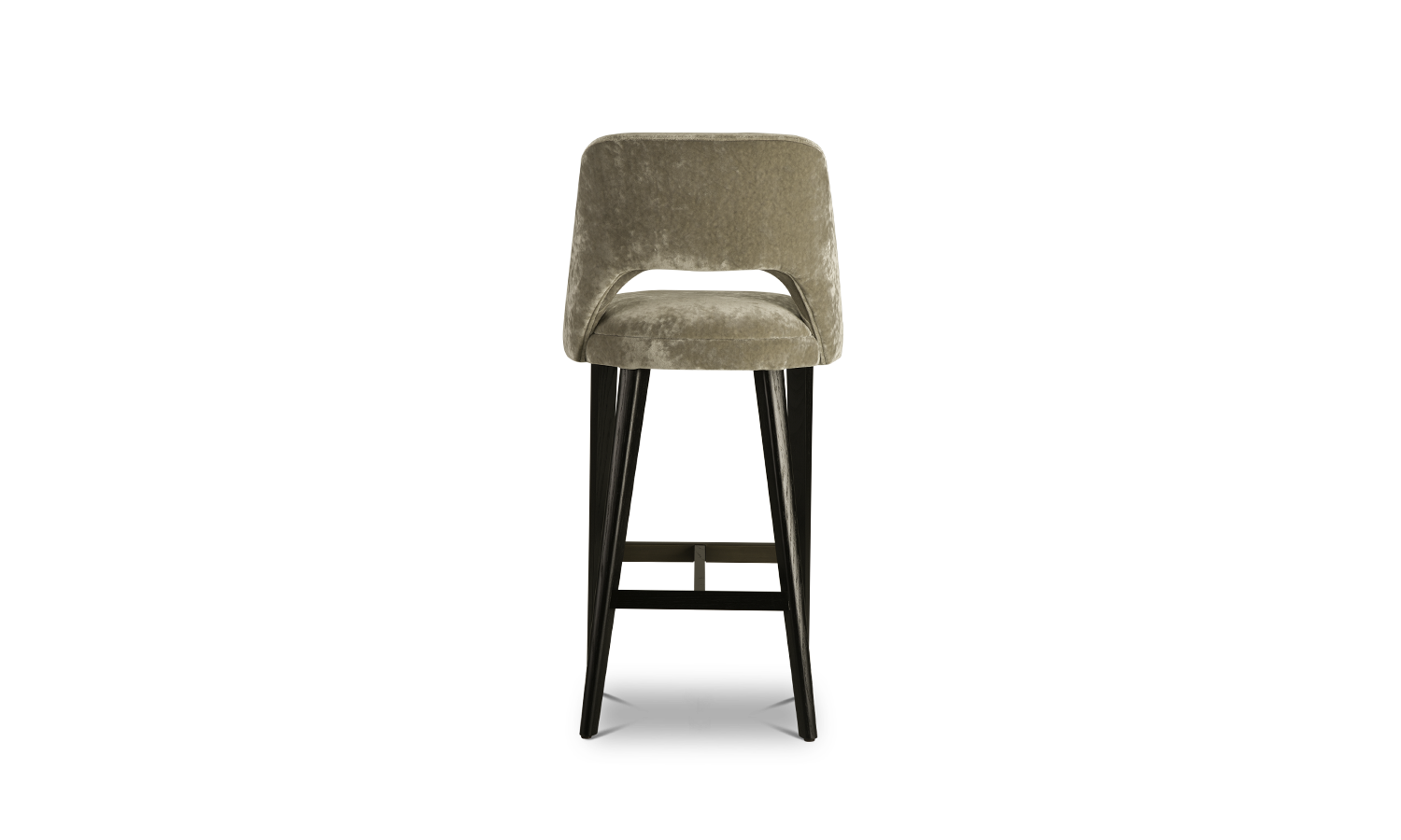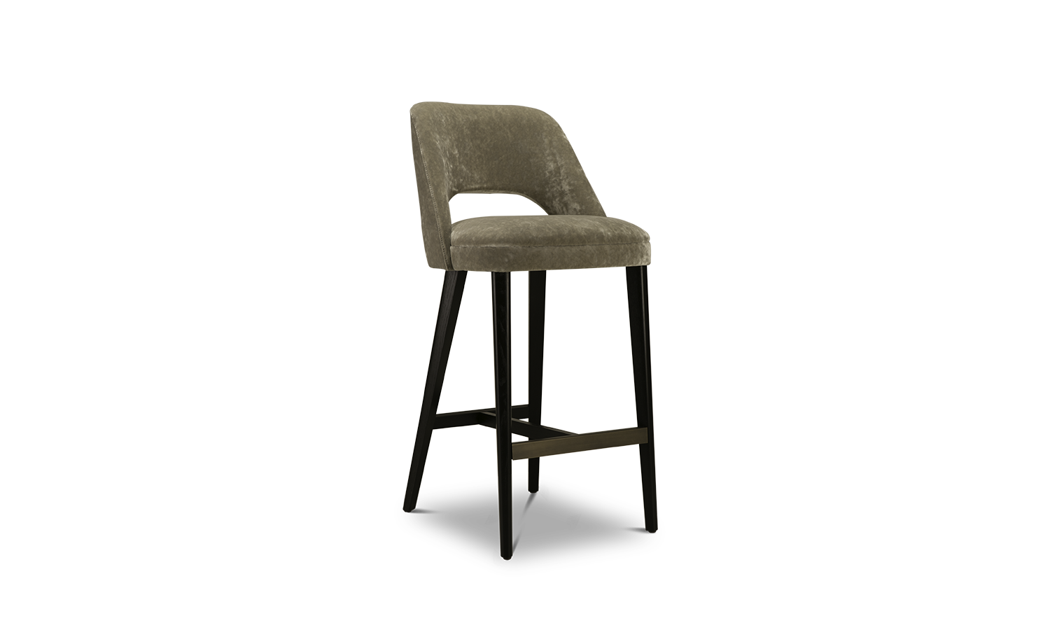 This barstool features a solid wood structure and legs in standard finishes. It is possible in Cat. I-VI fabrics and leathers and also in customer’s own material. Variable seat heights are available with or without arms.