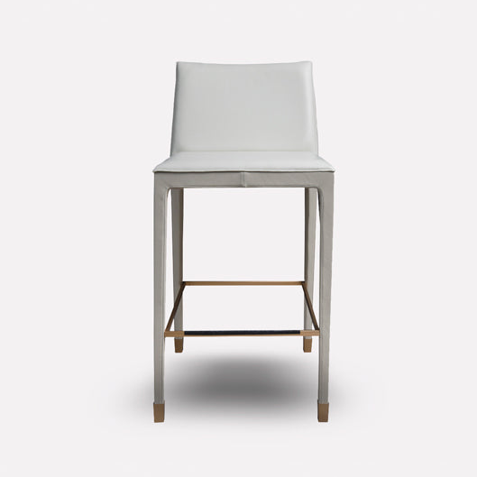 This bar or counter chair of the CUBÉ collection exudes luxury craftsmanship. It captivates the attention with its modern lines combined with noble metal accents at its top and feet and the posh upholstery with impeccable stitching. The double cushioning on the seat adds to the comfort level while its straight shape and unobstructed silhouette make it a timeless piece that elevates your bar or counter.
