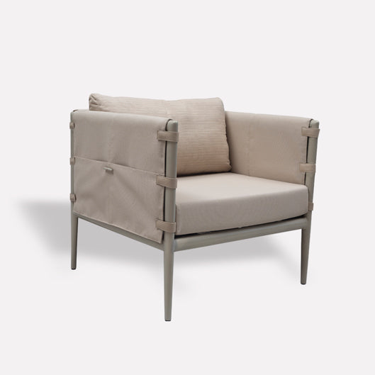 Our indoor-outdoor collection DUNE reflects the lifestyle of fluent transitions between the inside and the outside of a home. The refined aluminum structure in elegant finishes holds a tailored cover with strap & button details and comfortable removable seat and back cushions. The elegant look is supported by the luxury material combination of outdoor leathers and soft fabrics further blurring the line between indoor and outdoor living.