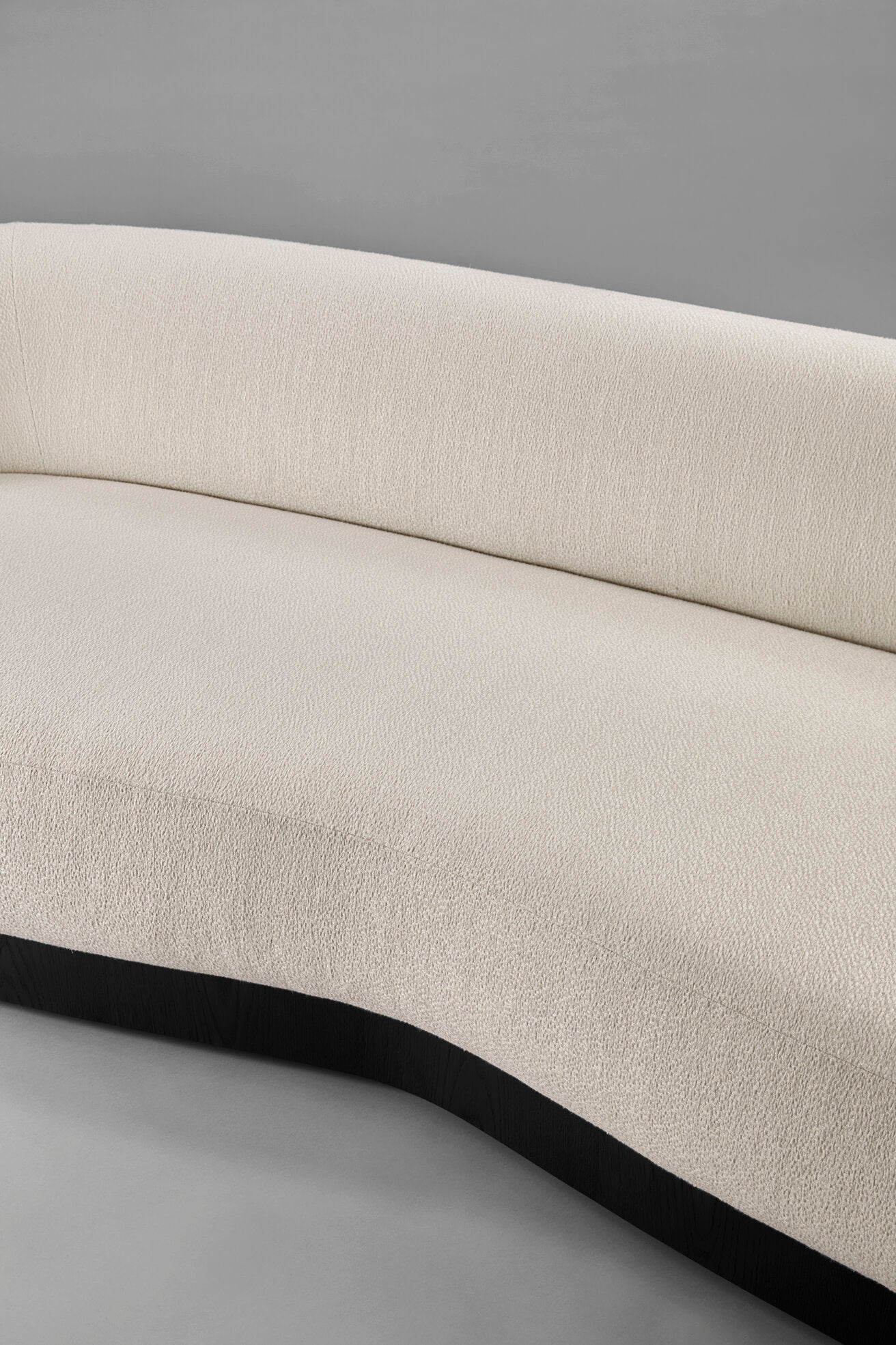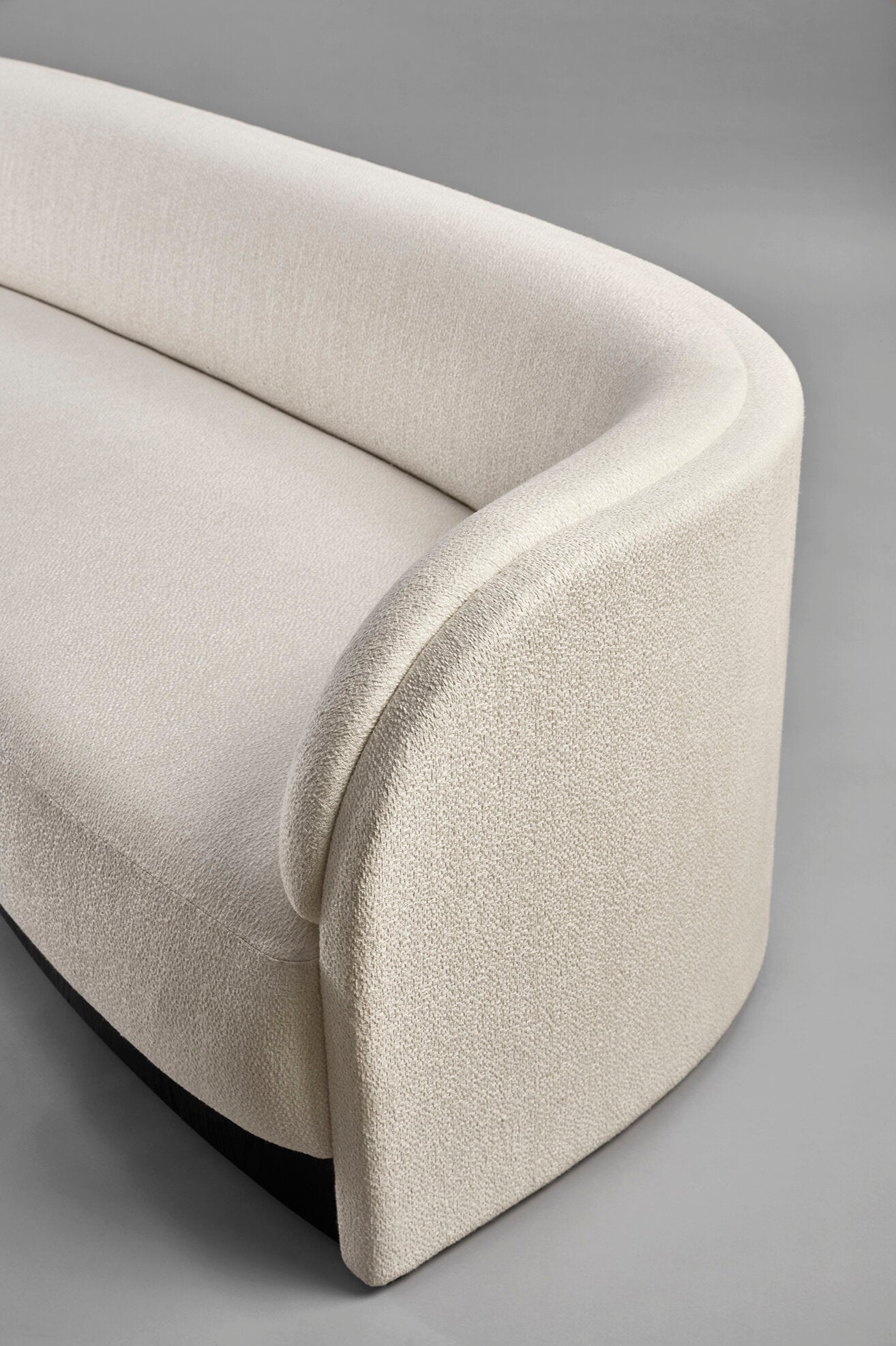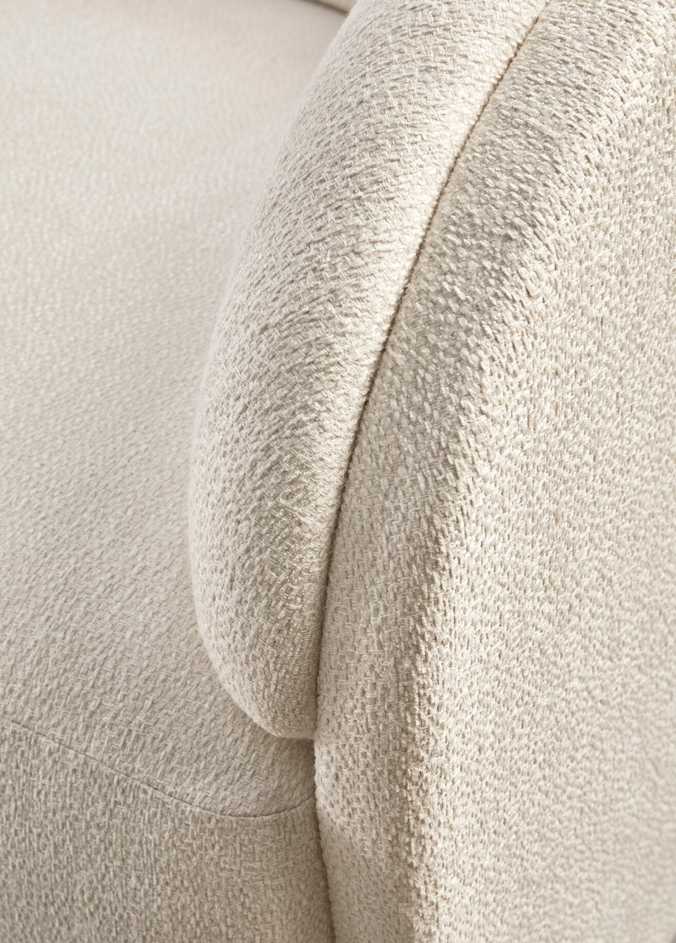 Design by anthony guerrée all in softness and sinuosity, the dune sofa recalls the undulations of the sand swept by the wind. its simple line, its round shapes underlined by discreet seams, its enveloping volumes make it a masterpiece around which the house comes alive. its irregularly deep seat invites you to sit on it throughout the day, varying your posture. at times convivial, at times intimate, dune becomes a refuge for dreaming and reading. the sandblasted oak base emphasizes the curvature of the seat and reminds us of philippe hurel's attachment to cabinet making.