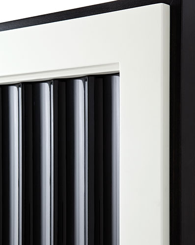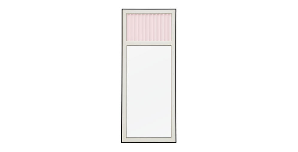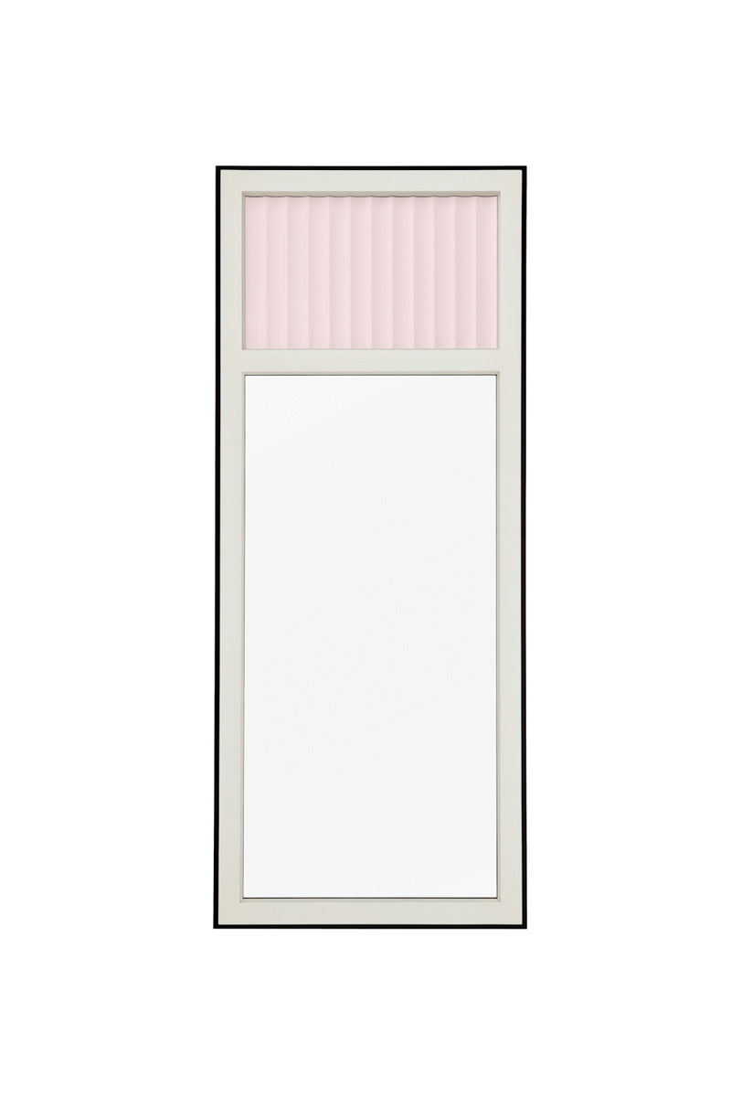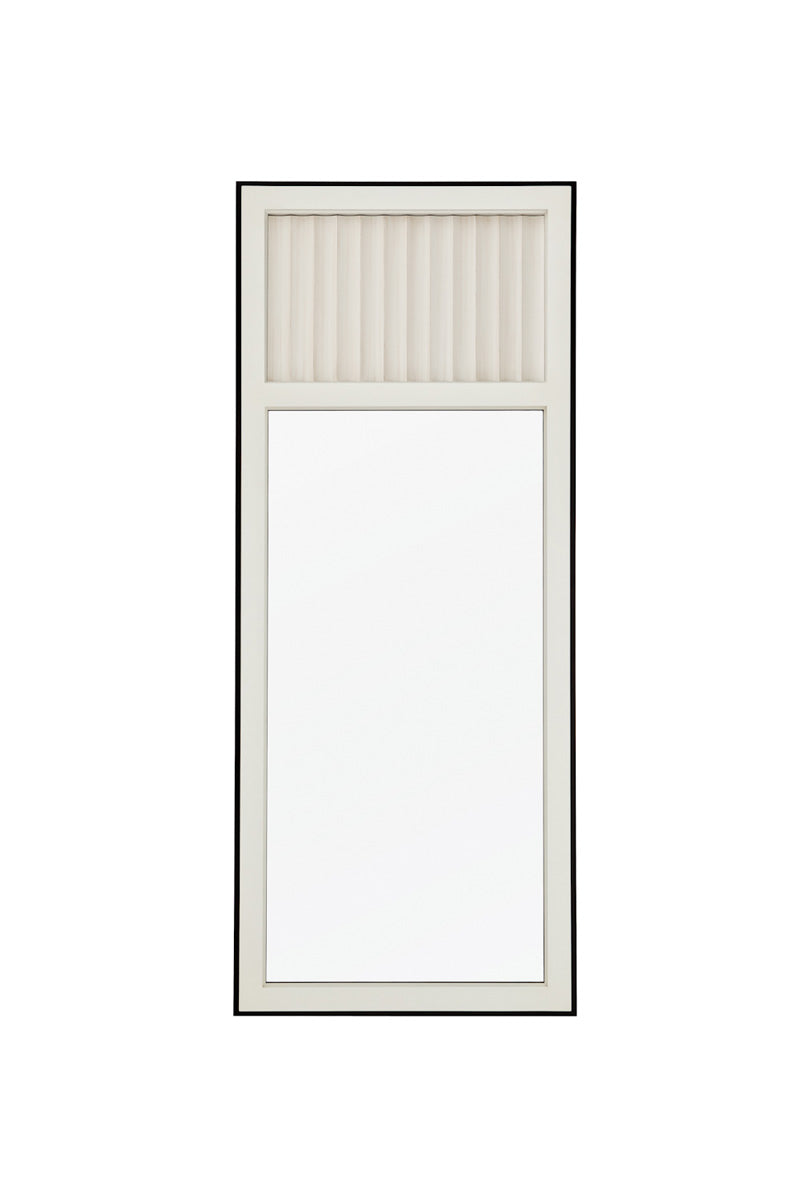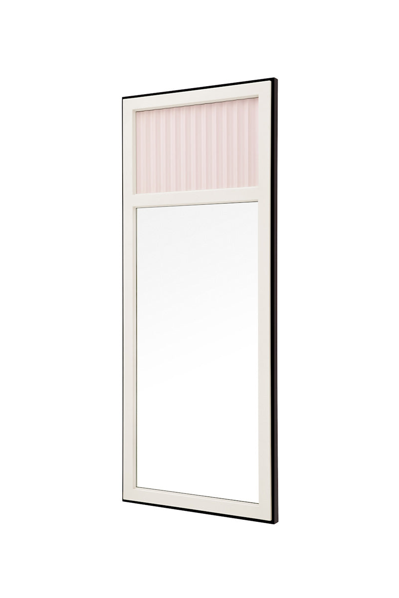 lacquer fluted surmount atop a clear or antique mirror. wood with lacquer border frame.