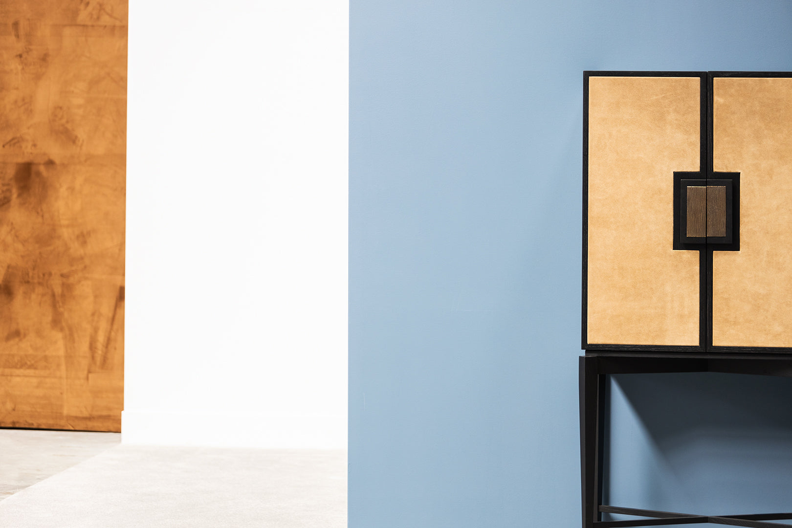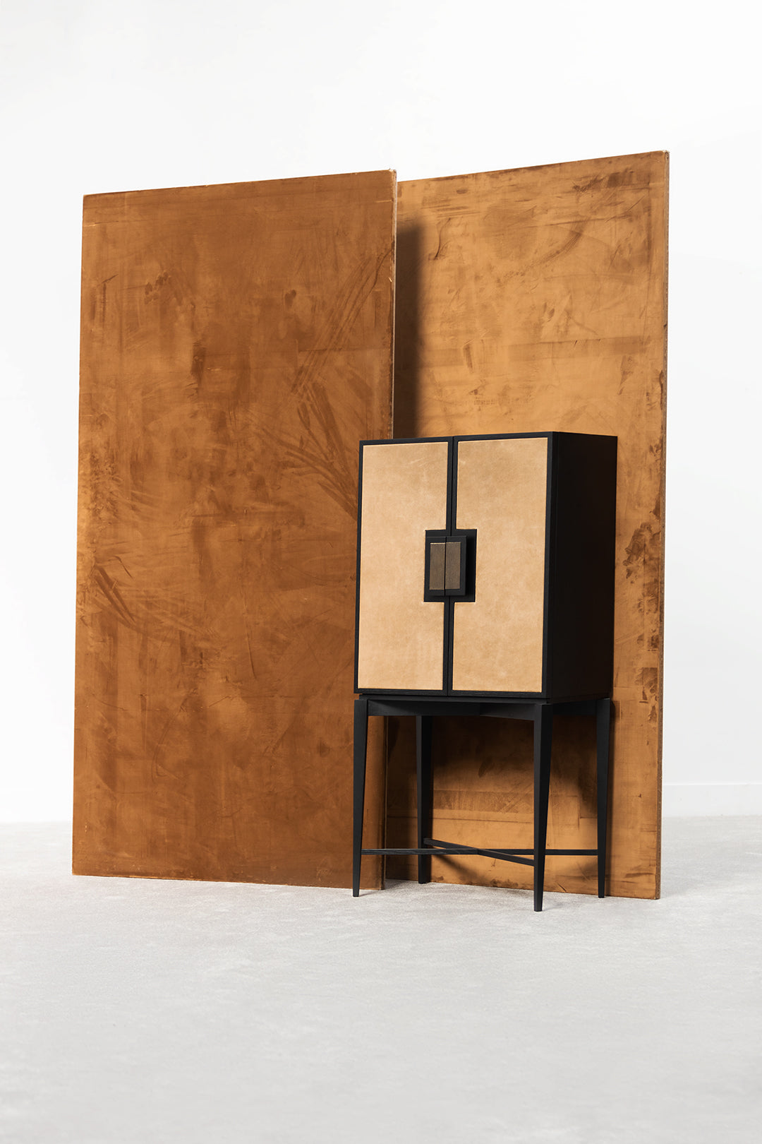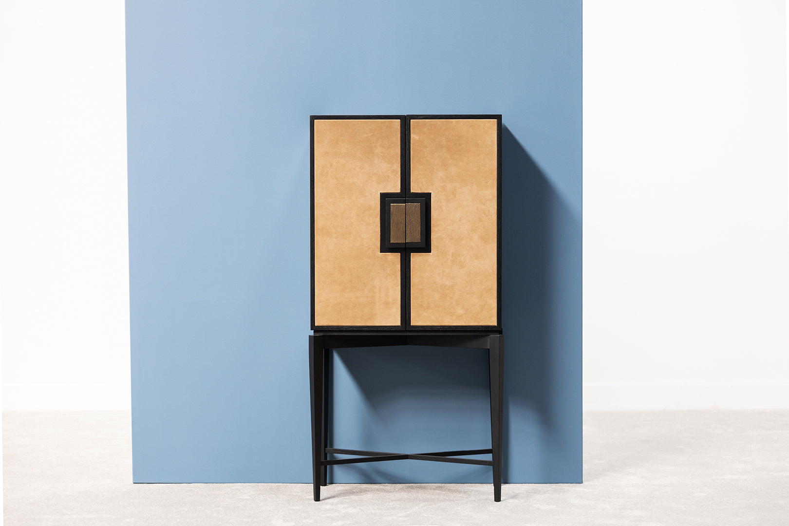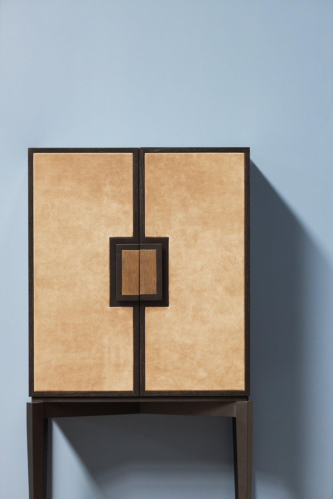 This storage cabinet features with door facades available in suede, timber or customer`s own material. Other dimensions and finishes are available on request.
