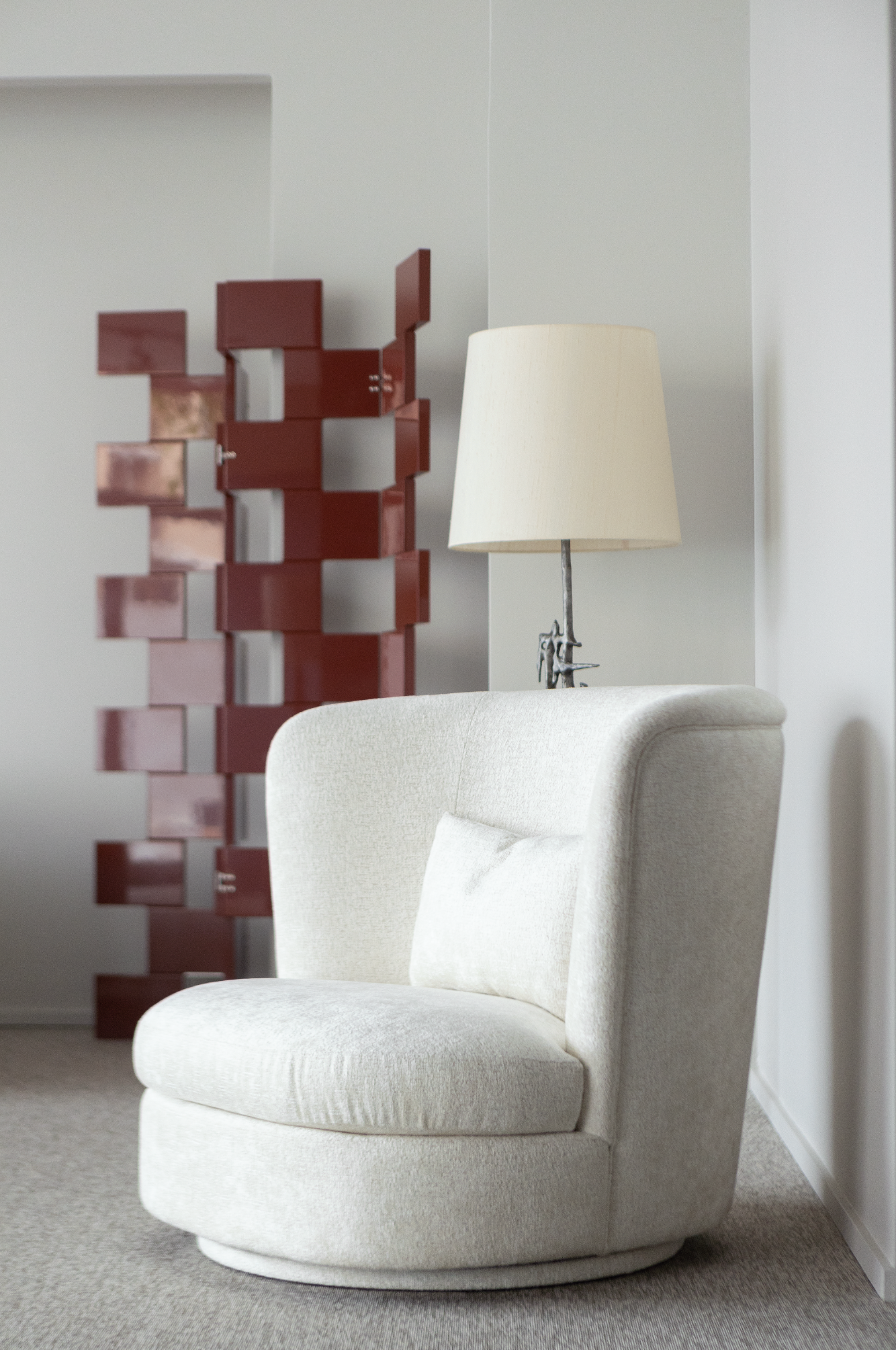Cushions are sold separately. We recommend one knife-edged lumbar cushion M 45x30 or one knife-edged square cushion M 50x50. (KE.Lumbar Cushion-M) / (KE.Square Cushion-M)