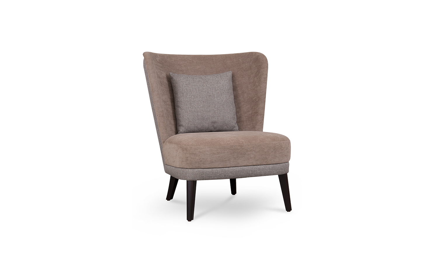 This lounge chair with solid wood structure and base in standard finishes is available in Cat. I-VI fabrics and leathers (3,5 m / un.) with the possibility of client fabric. Also available in 2P and 3P sofa versions.