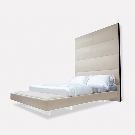Feels like heaven in our dreamy bed with its oversized upholstered headboard available in different patterns and framed with noble metal. Make an unforgettable impression in your master suite.