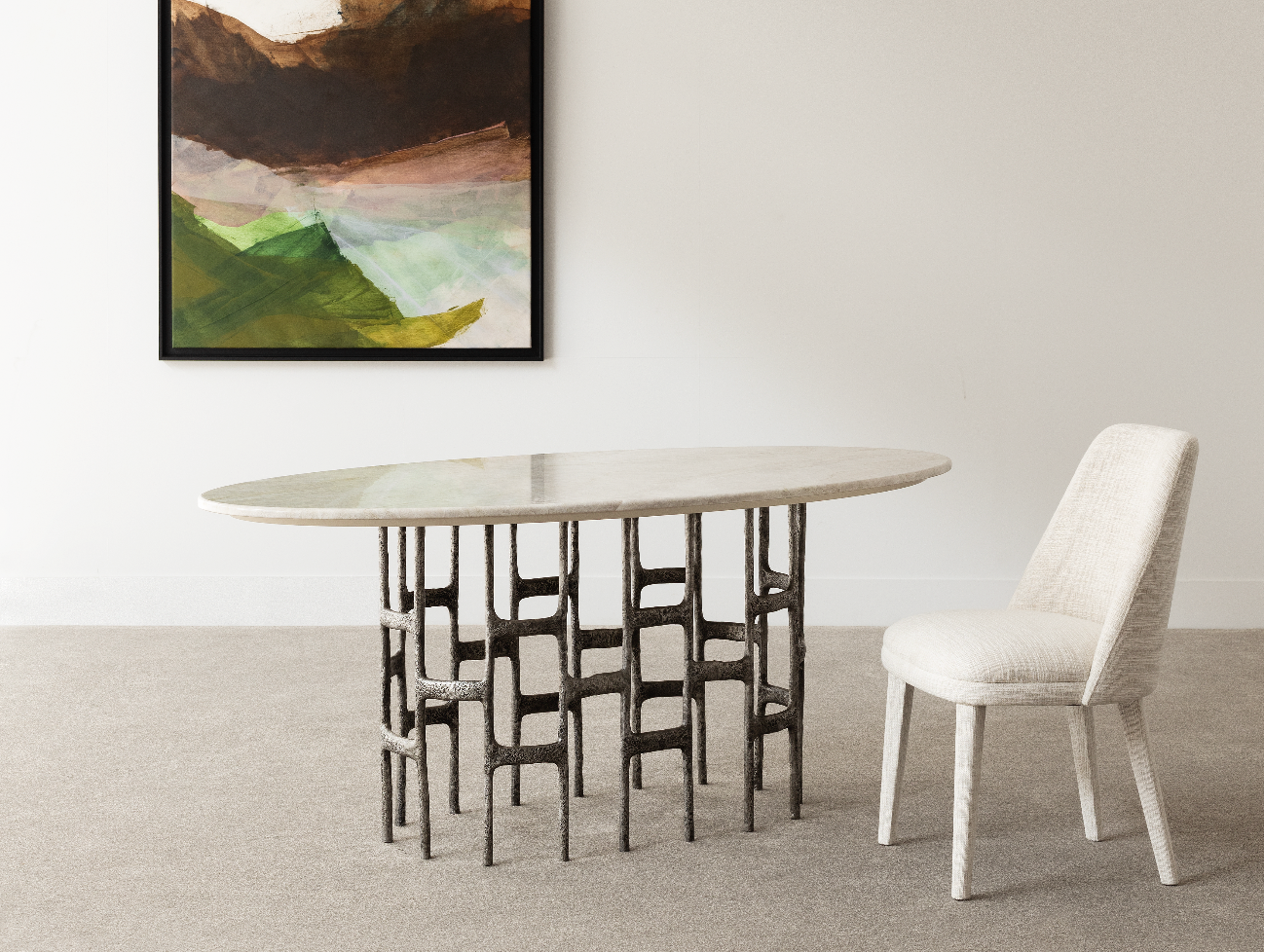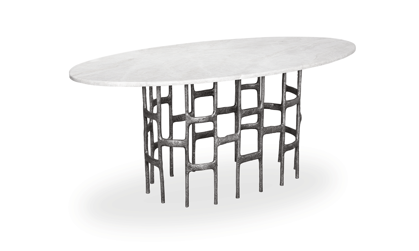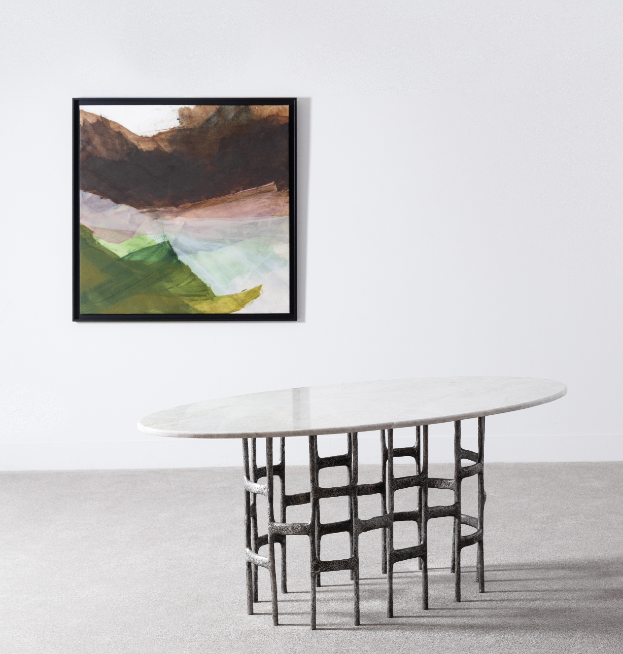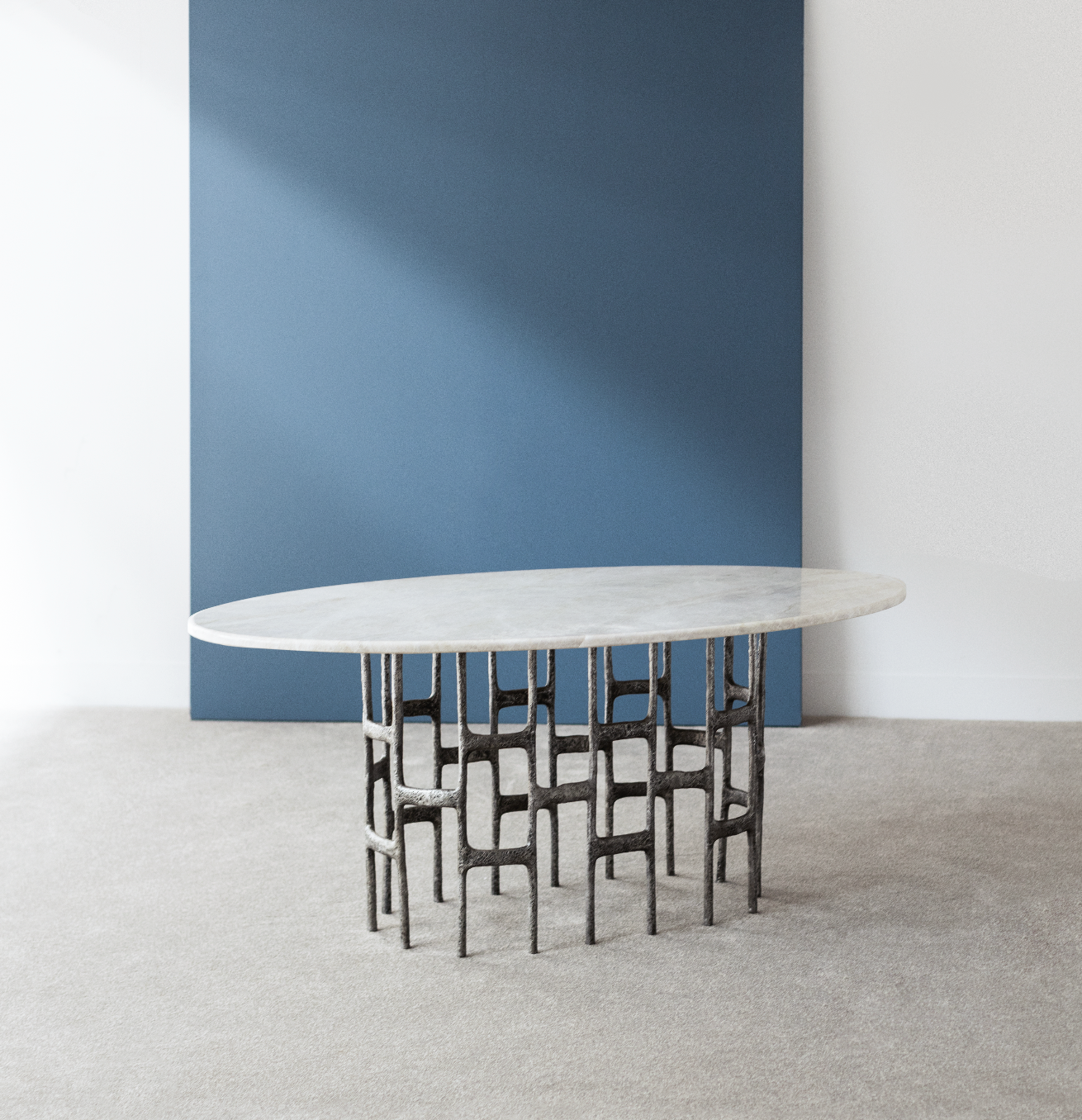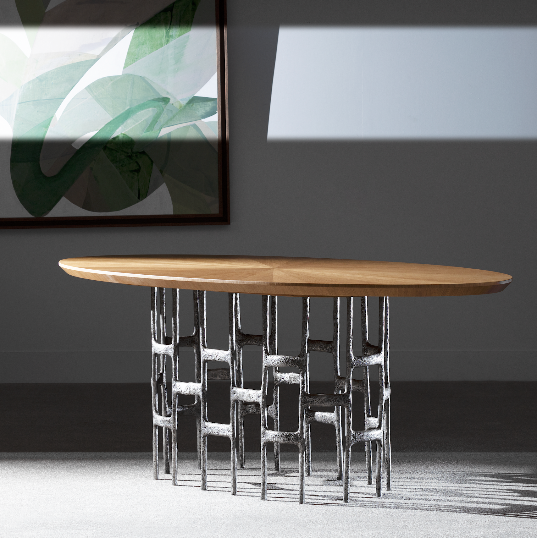 This organic textured table frees up visual space, allowing air and light to circulate. The contrast between material form and emptiness gives Hoffman a presence that is as elegant as it is discreet. Its well-defined volume and marked transparency make it the ideal table for those who want to minimise visual clutter. It adapts perfectly to any space, creating a sophisticated ambiance. This table combines perfectly with most of our chair ranges.