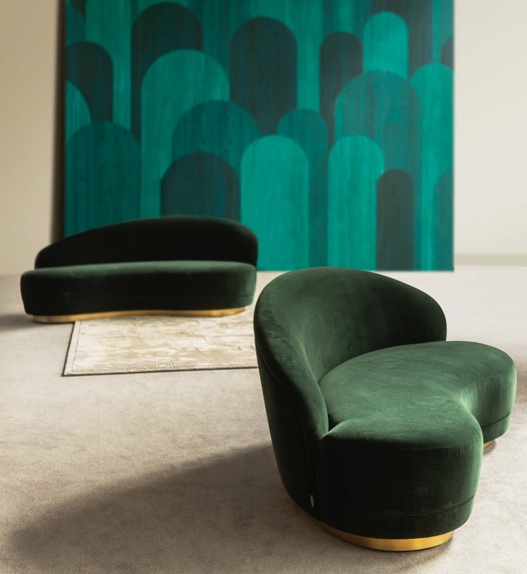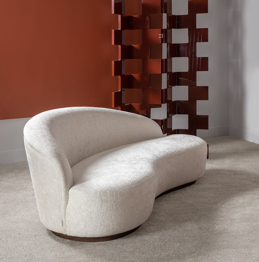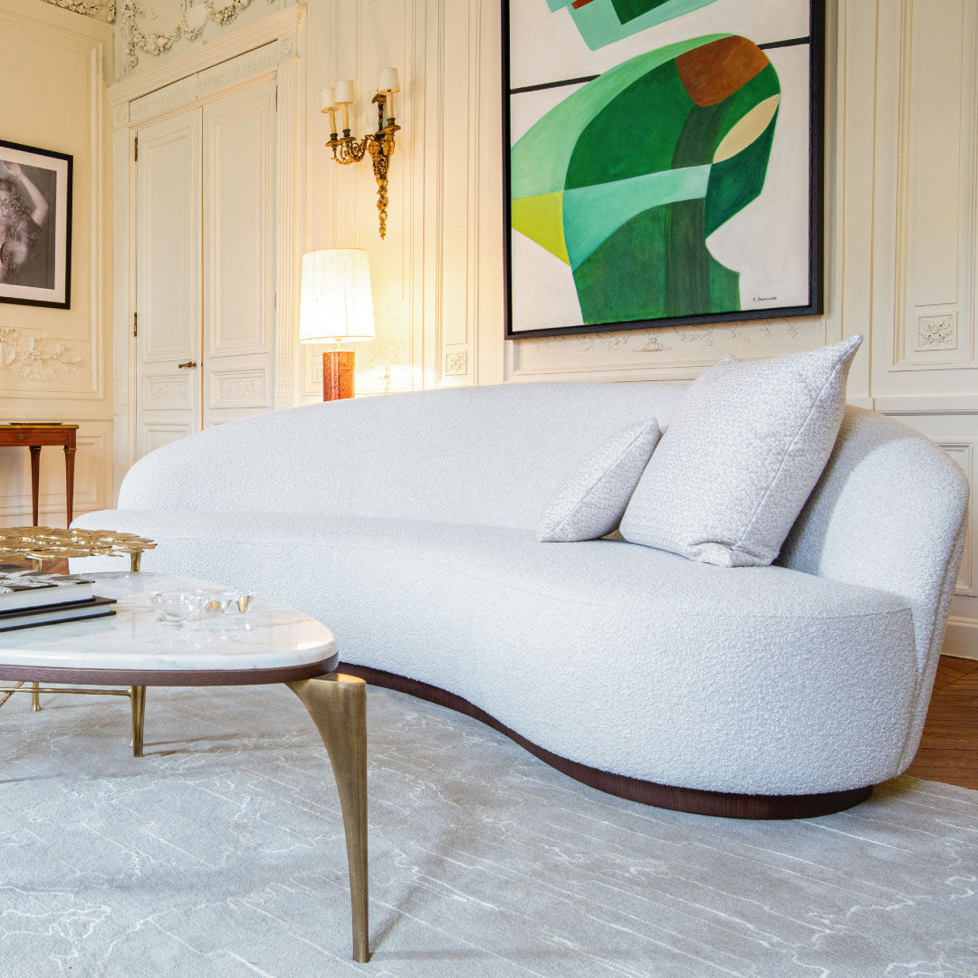 Ignacio revisits the organic lines that flourished in the 1960s and 1970s. It offers a depth of seating and harmoniously unbalanced shapes, bringing elegance and refinement to any space. It is designed to be the centrepiece of any project and can be staged in combination with poufs, armchairs... even in pairs or more.