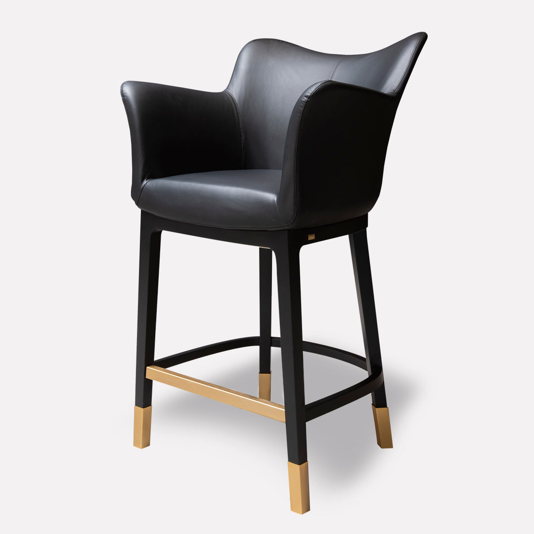 Sensual curves follow through the design of the JENN counter or bar stool whose shell hugs you and gives you comfort. The rounded proportions translate into a commodious seat and armrest that invite to extensive conversations.