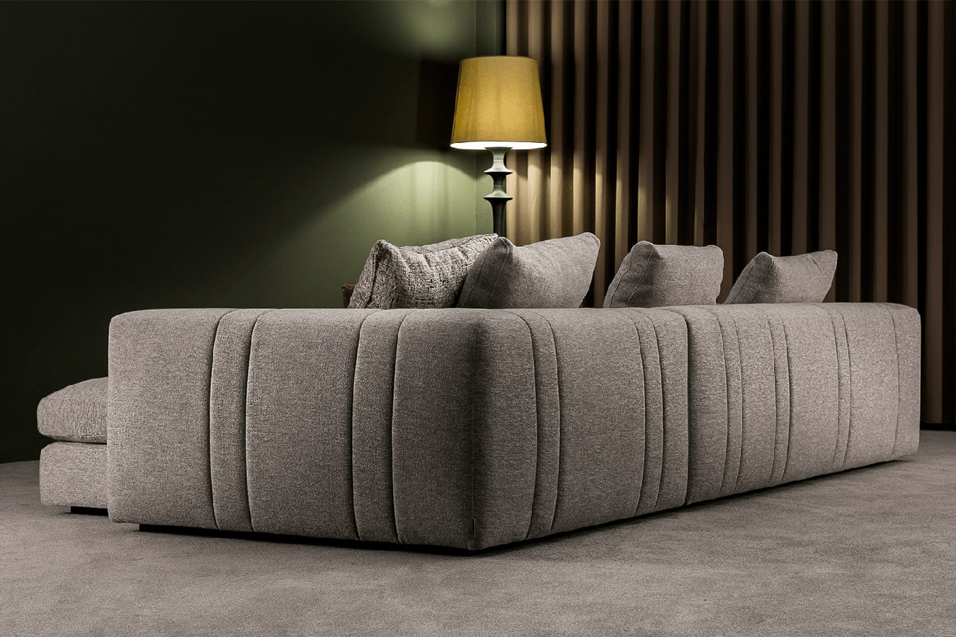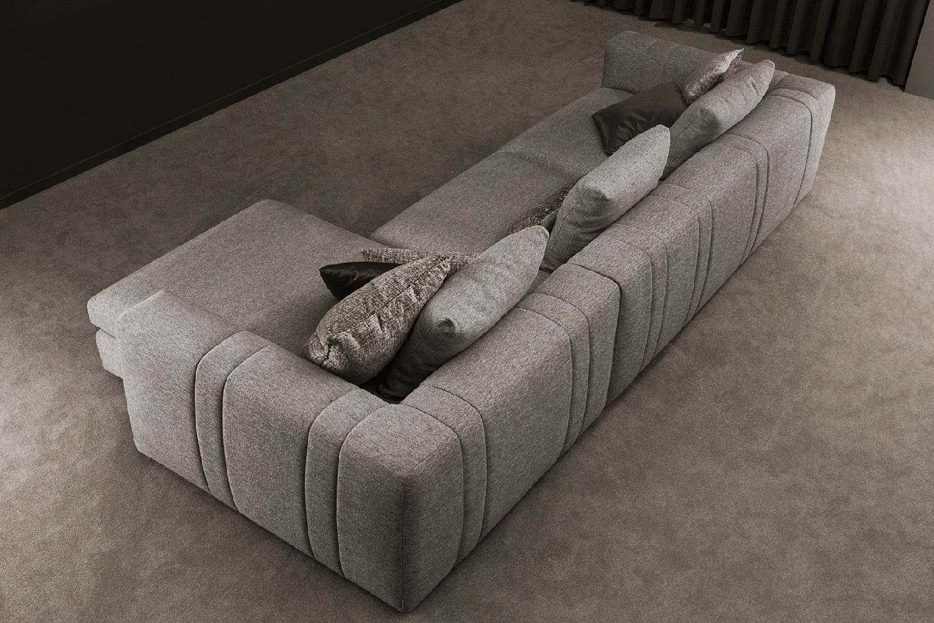 An incredibly comfortable sofa, its asymmetrical cylinders on the sides and back along with the rounded seat cushions and armrests are slightly reminiscent of 1970s Milanese cosmopolitan style. Lapo is an ideal sofa in which to relax and unwind.