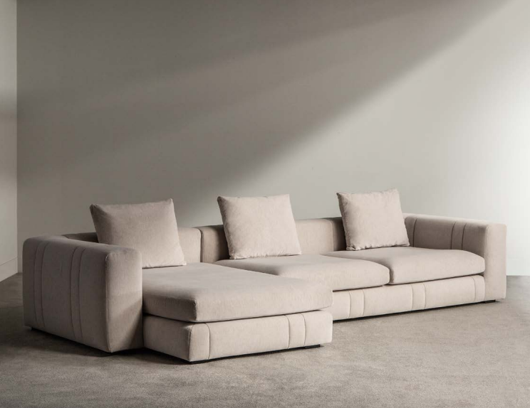 Available in a 3-seater fixed version, sofa bed version, or L shaped, this sofa has a solid wood structure and base available in standard finishes. Cat I-VI fabrics and leathers, possible in customer’s own material. Cushion combinations on request depending on ergonomic needs.