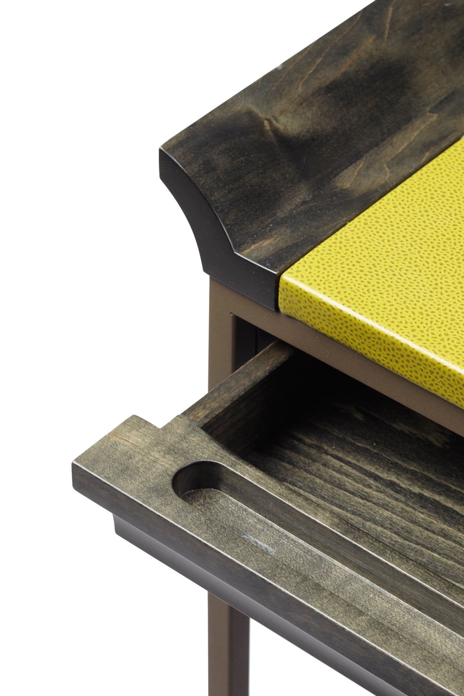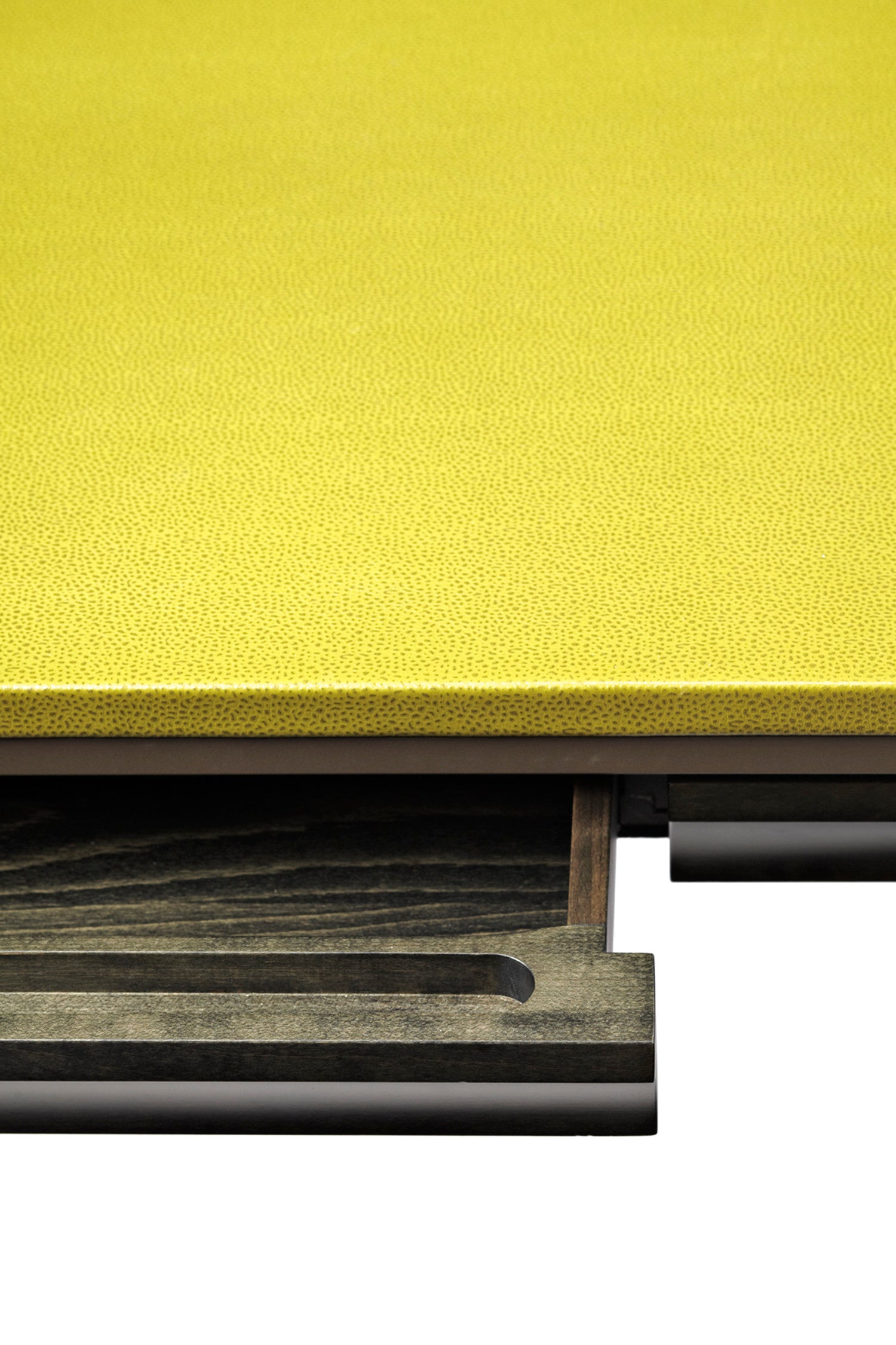 Lucca was revealed in 1991 by a whimsical sketch initiated by the premise that nothing should roll off a desktop. the idea was inspired by the singular ramparts of the little fortified town of lucca in italy. in other words a continuous border on three sides of a desk containing physically and aesthetically everyting that one would expect to find in a working bureau.