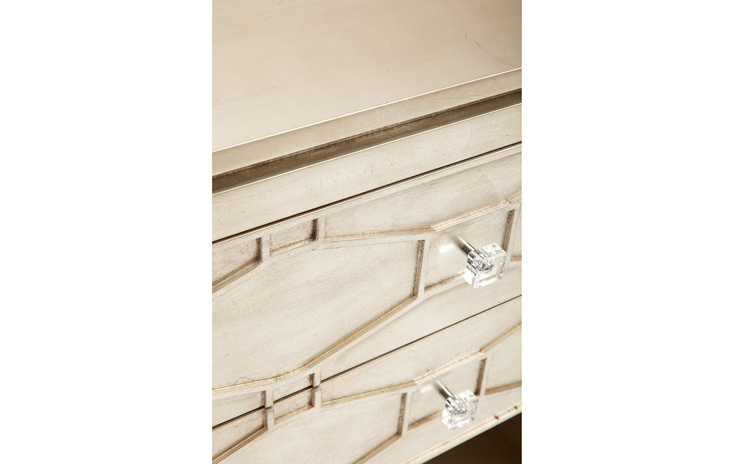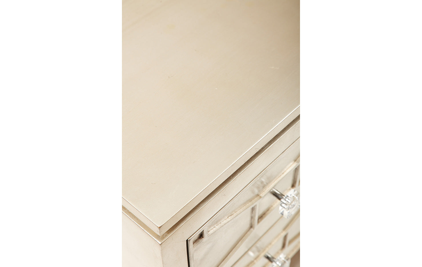 CASEGOODS FEATURE: All Erinn V. case goods are made to order in California using only the finest woods and metals, resulting in a richness of materials. Erinn V.’s modern-classic designs are highlighted by a range of fine details: hand-hammered hardware created specifically for each piece, hand-silvered mirrors in the most unique finishes, and sophisticated finishes such as gold leaf, which is gently applied and then glazed. All Erinn V. tables and cabinets are constructed using the same methods employed by fine European craftsmen for durability and unparalleled style, with modern technology like slow-close hardware on drawers and hinges. Erinn V. furniture is customizable for a one-of-a-kind feel, poised to be an heirloom of the future.
