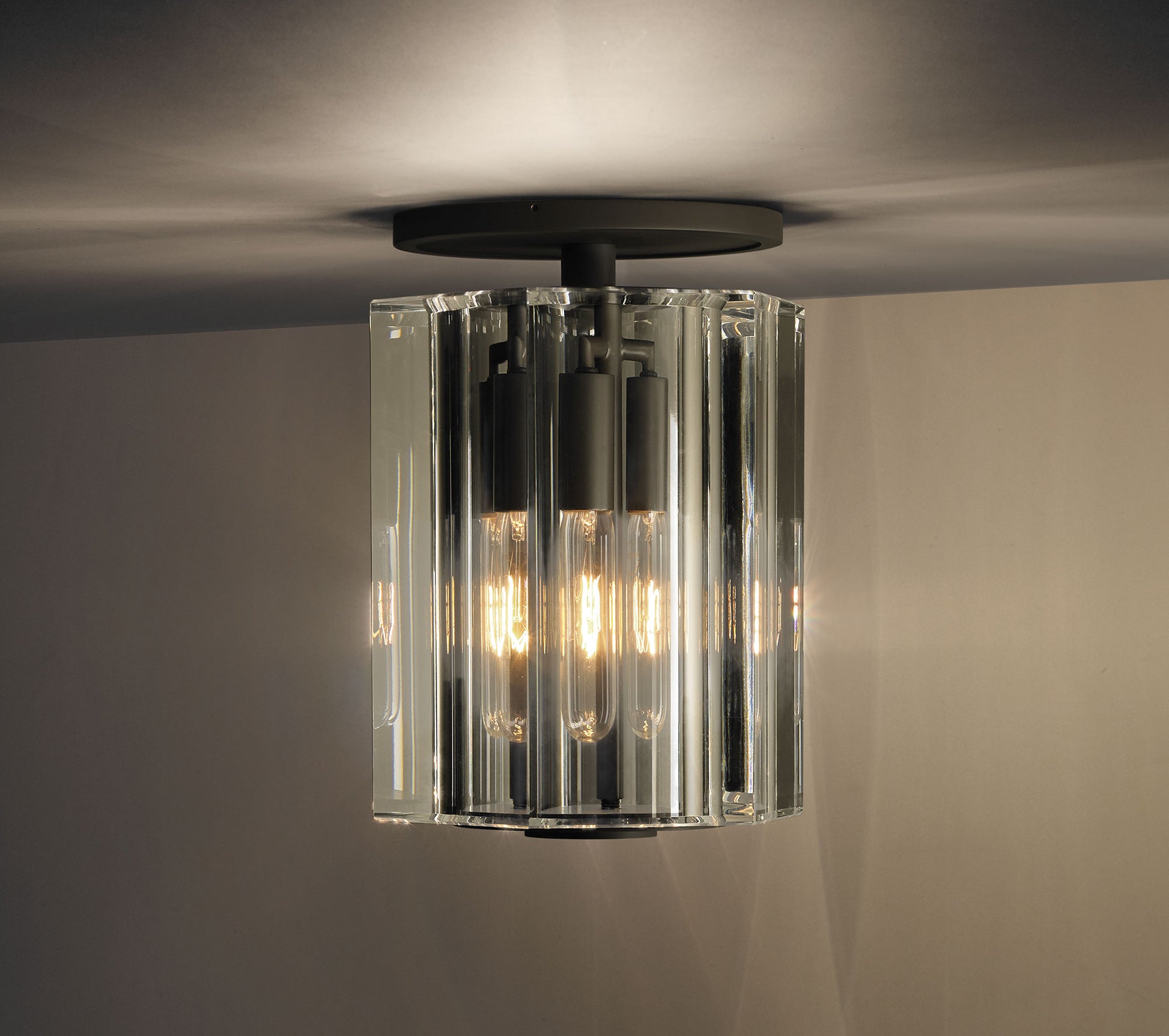 The Maubec Flush Mount is machined from solid brass. All parts are hand polished and patina’d. The lead crystal is machined and polished by hand.