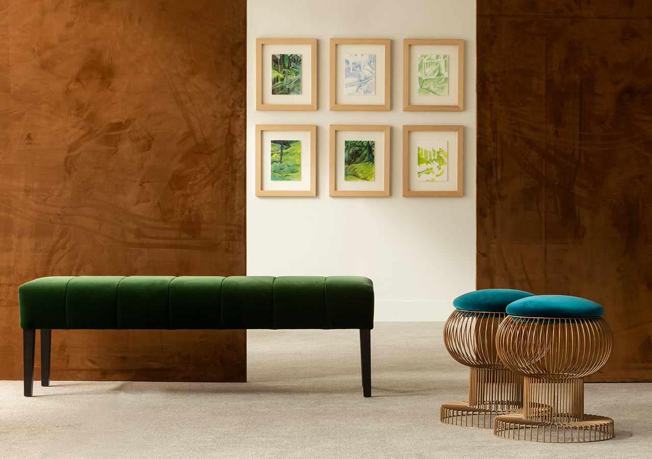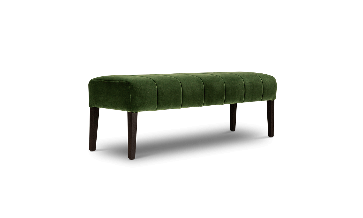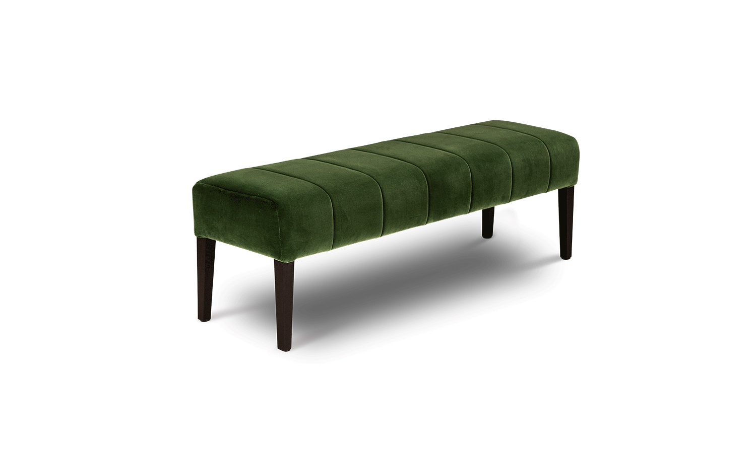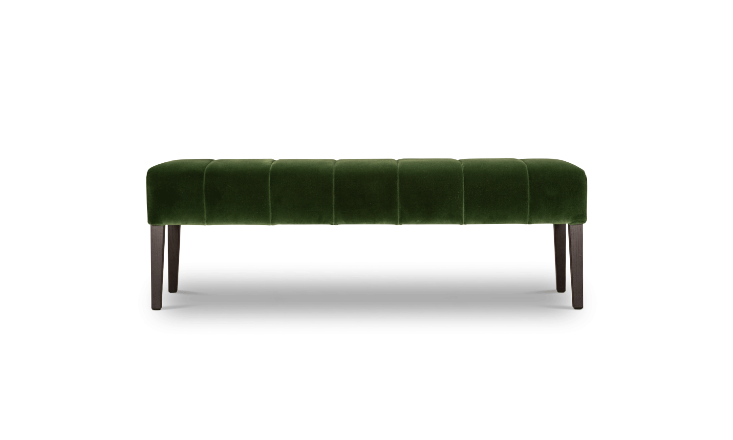 This bench has a solid wood structure and legs in standard finishes. It is possible in Cat. I-VI fabrics and leathers (1,5m / un.) and also in customer’s own material.