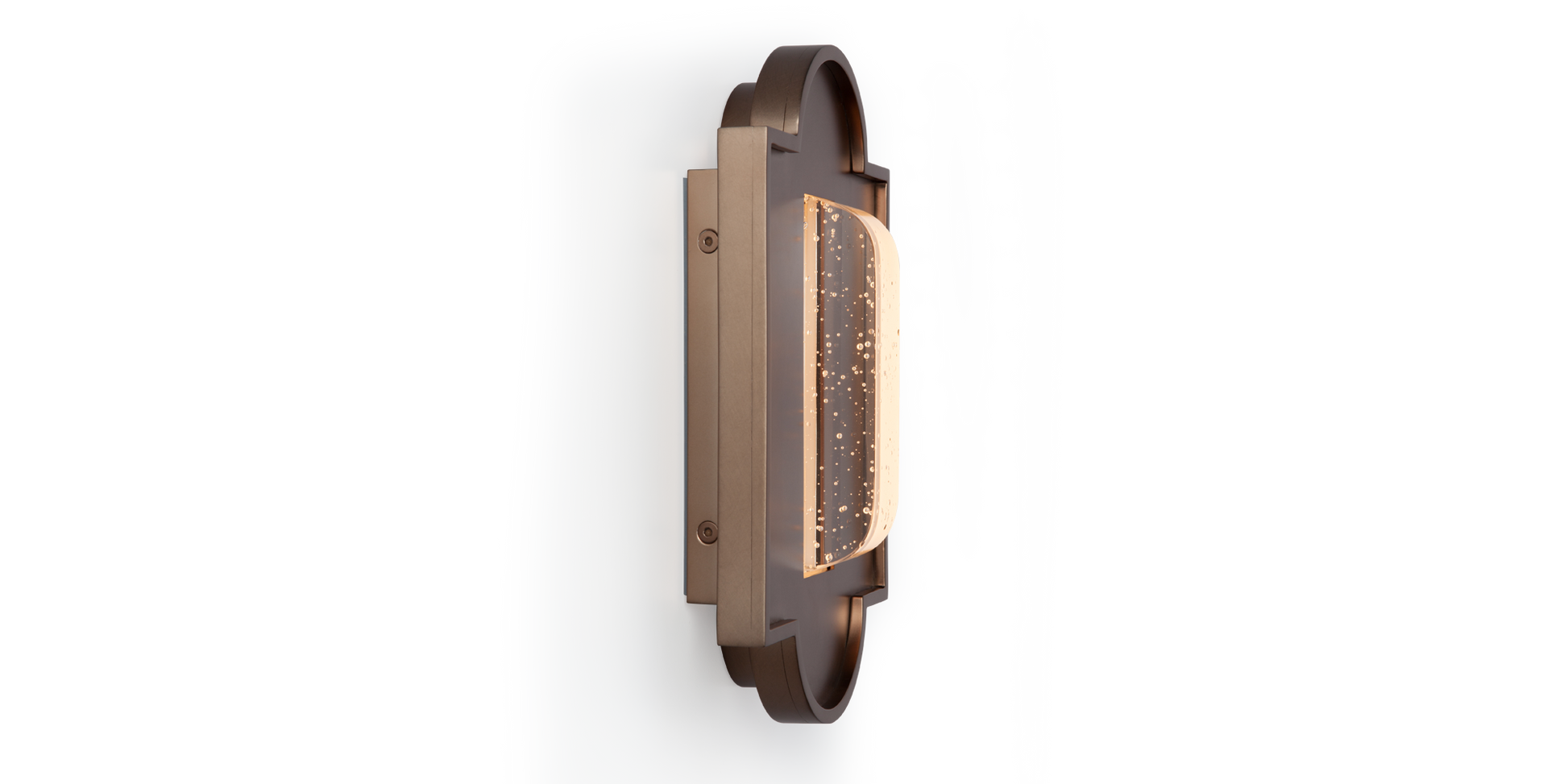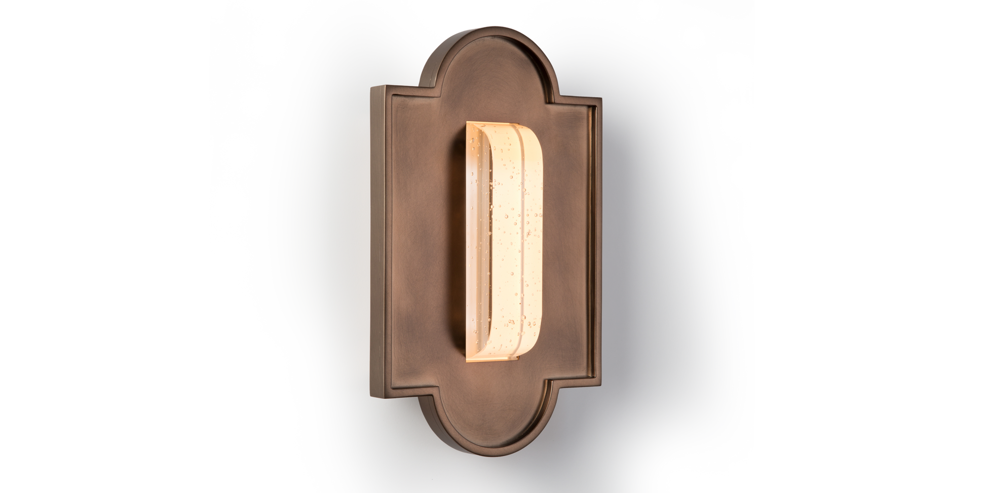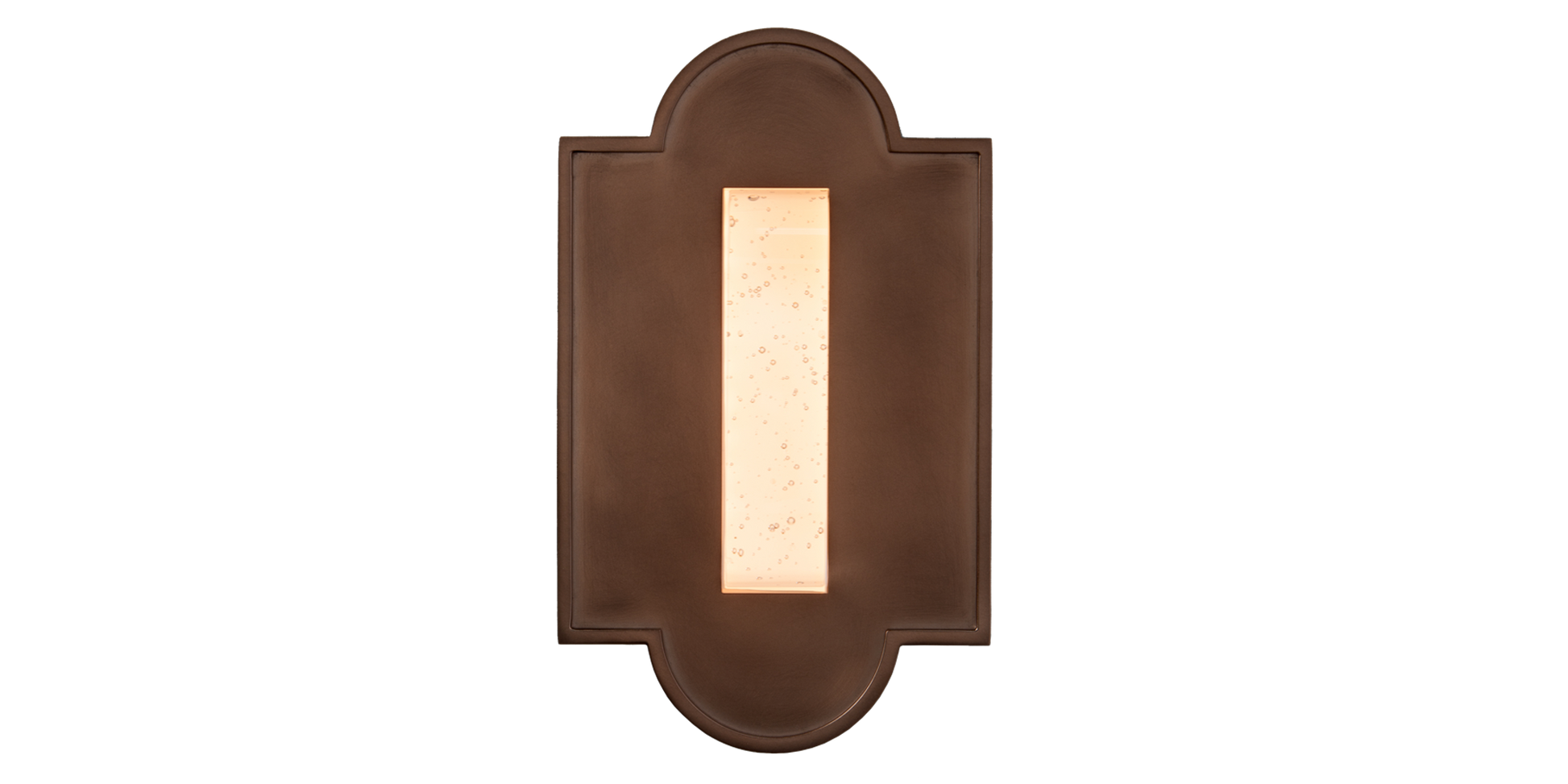 Classical Spanish architectural shapes inspired the pure lines of the Merida. Marrying a modern sensibility with rich historical nuance, these sconces feature an engineered crystal glass light source, which comes clear or with bubbles