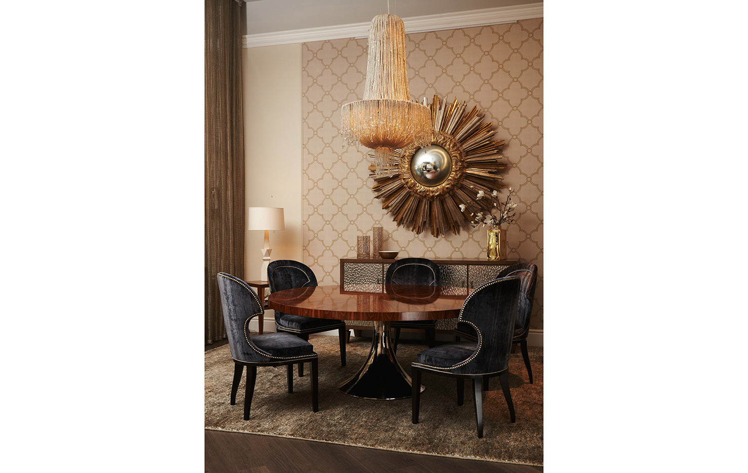 CASEGOODS FEATURE: All Erinn V. case goods are made to order in California using only the finest woods and metals, resulting in a richness of materials. Erinn V.’s modern-classic designs are highlighted by a range of fine details: hand-hammered hardware created specifically for each piece, hand-silvered mirrors in the most unique finishes, and sophisticated finishes such as gold leaf, which is gently applied and then glazed. All Erinn V. tables and cabinets are constructed using the same methods employed by fine European craftsmen for durability and unparalleled style, with modern technology like slow-close hardware on drawers and hinges. Erinn V. furniture is customizable for a one-of-a-kind feel, poised to be an heirloom of the future.