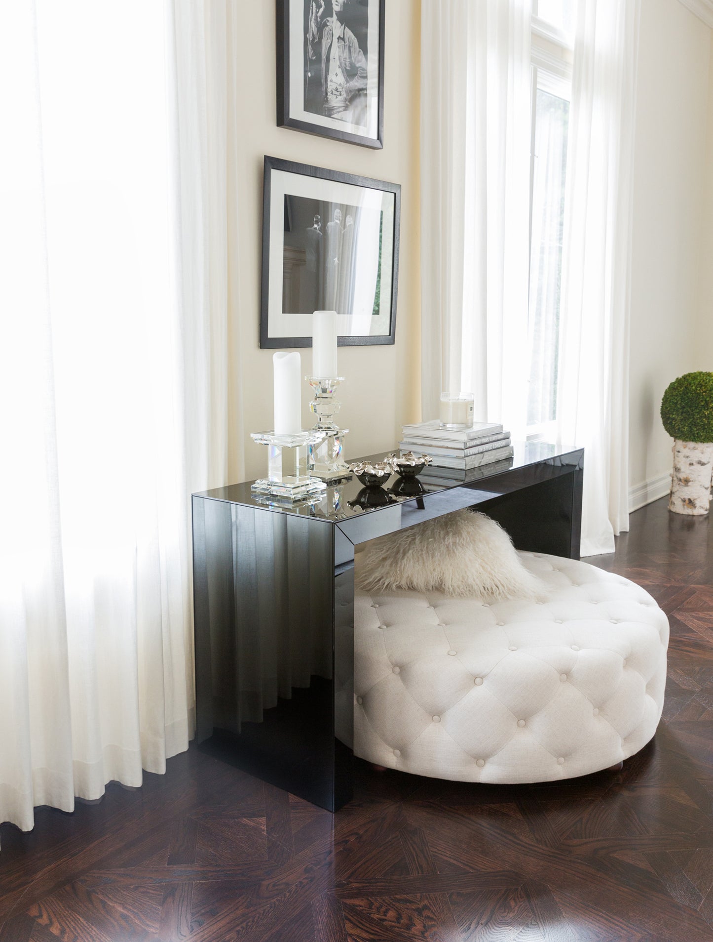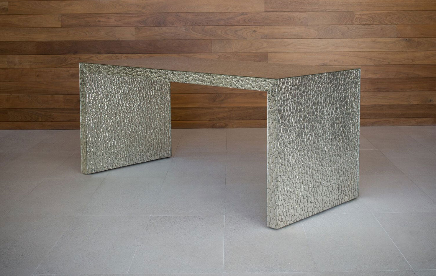 CASEGOODS FEATURE: All Erinn V. case goods are made to order in California using only the finest woods and metals, resulting in a richness of materials. Erinn V.’s modern-classic designs are highlighted by a range of fine details: hand-hammered hardware created specifically for each piece, hand-silvered mirrors in the most unique finishes, and sophisticated finishes such as gold leaf, which is gently applied and then glazed. All Erinn V. tables and cabinets are constructed using the same methods employed by fine European craftsmen for durability and unparalleled style, with modern technology like slow-close hardware on drawers and hinges. Erinn V. furniture is customizable for a one-of-a-kind feel, poised to be an heirloom of the future.