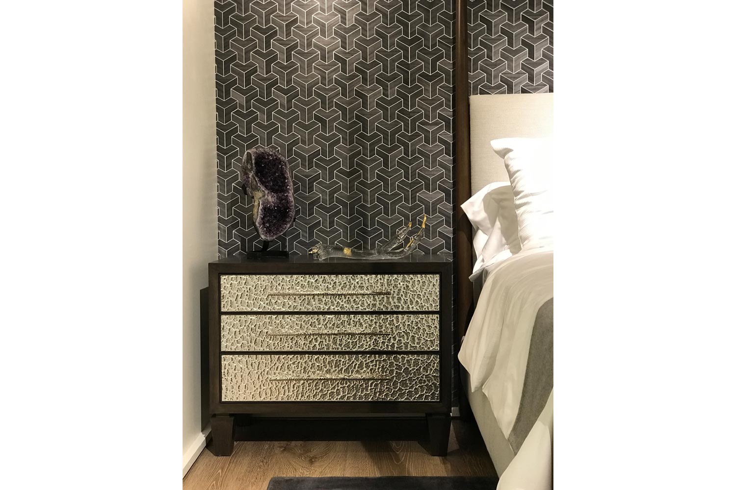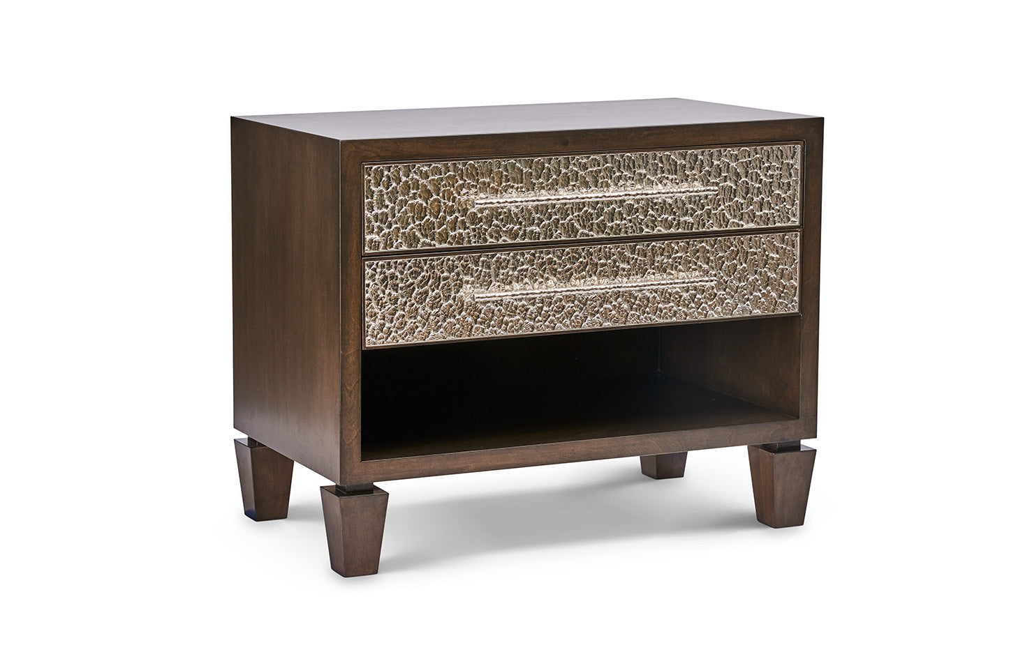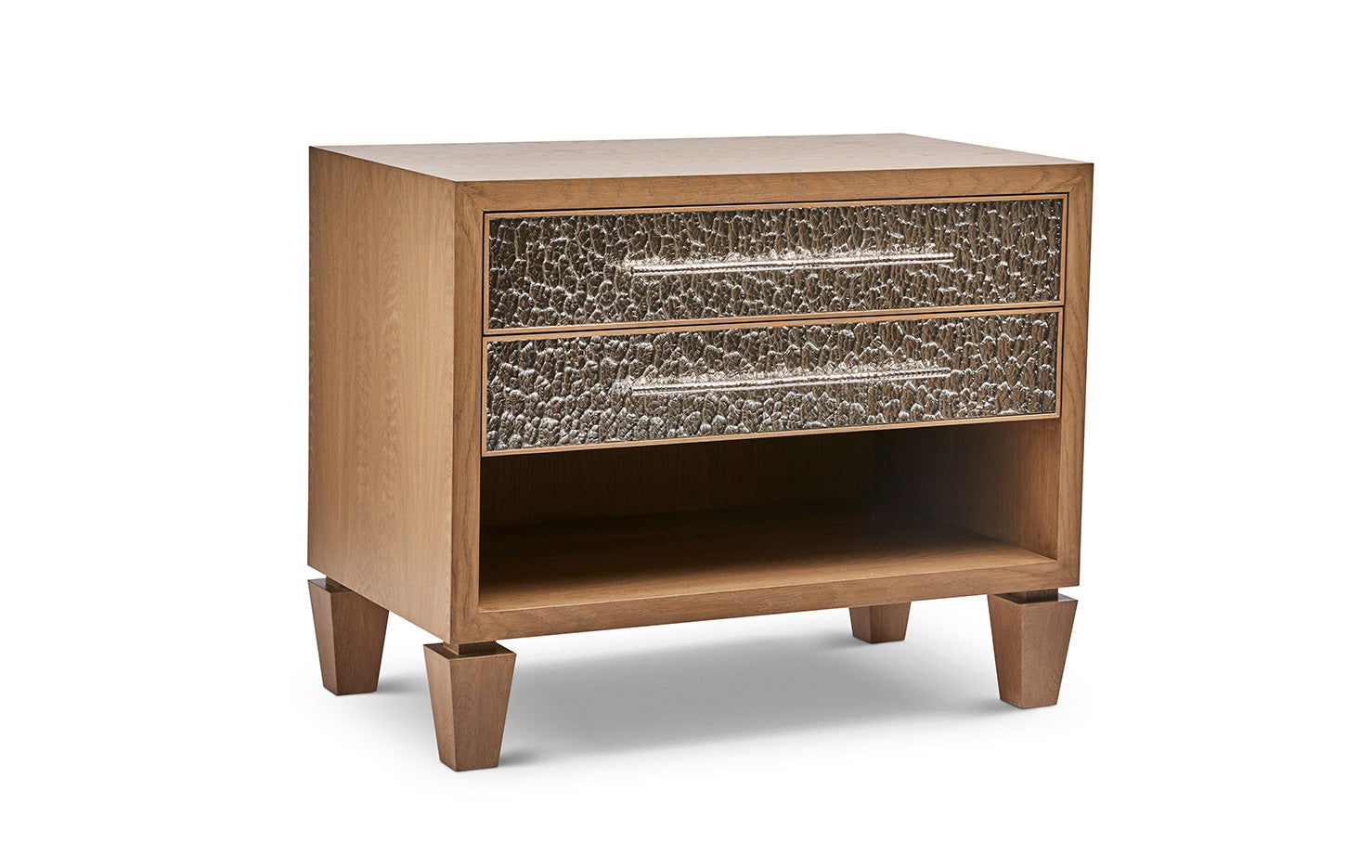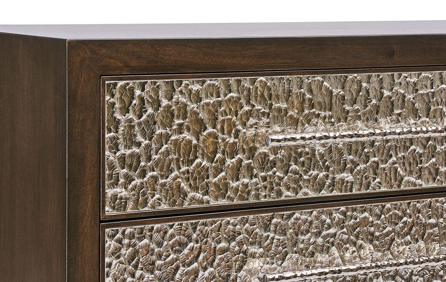 CASEGOODS FEATURE: All Erinn V. case goods are made to order in California using only the finest woods and metals, resulting in a richness of materials. Erinn V.’s modern-classic designs are highlighted by a range of fine details: hand-hammered hardware created specifically for each piece, hand-silvered mirrors in the most unique finishes, and sophisticated finishes such as gold leaf, which is gently applied and then glazed. All Erinn V. tables and cabinets are constructed using the same methods employed by fine European craftsmen for durability and unparalleled style, with modern technology like slow-close hardware on drawers and hinges. Erinn V. furniture is customizable for a one-of-a-kind feel, poised to be an heirloom of the future.