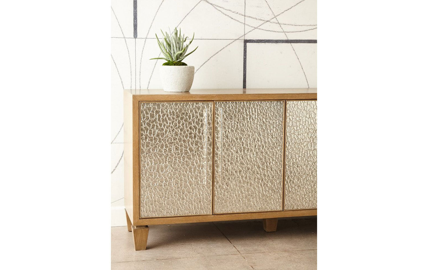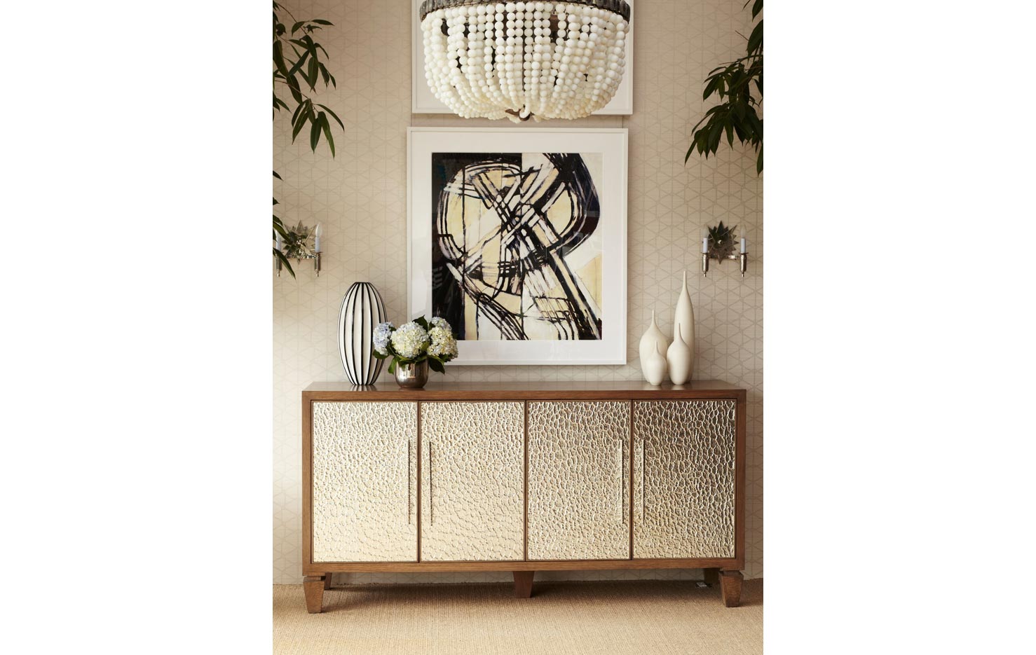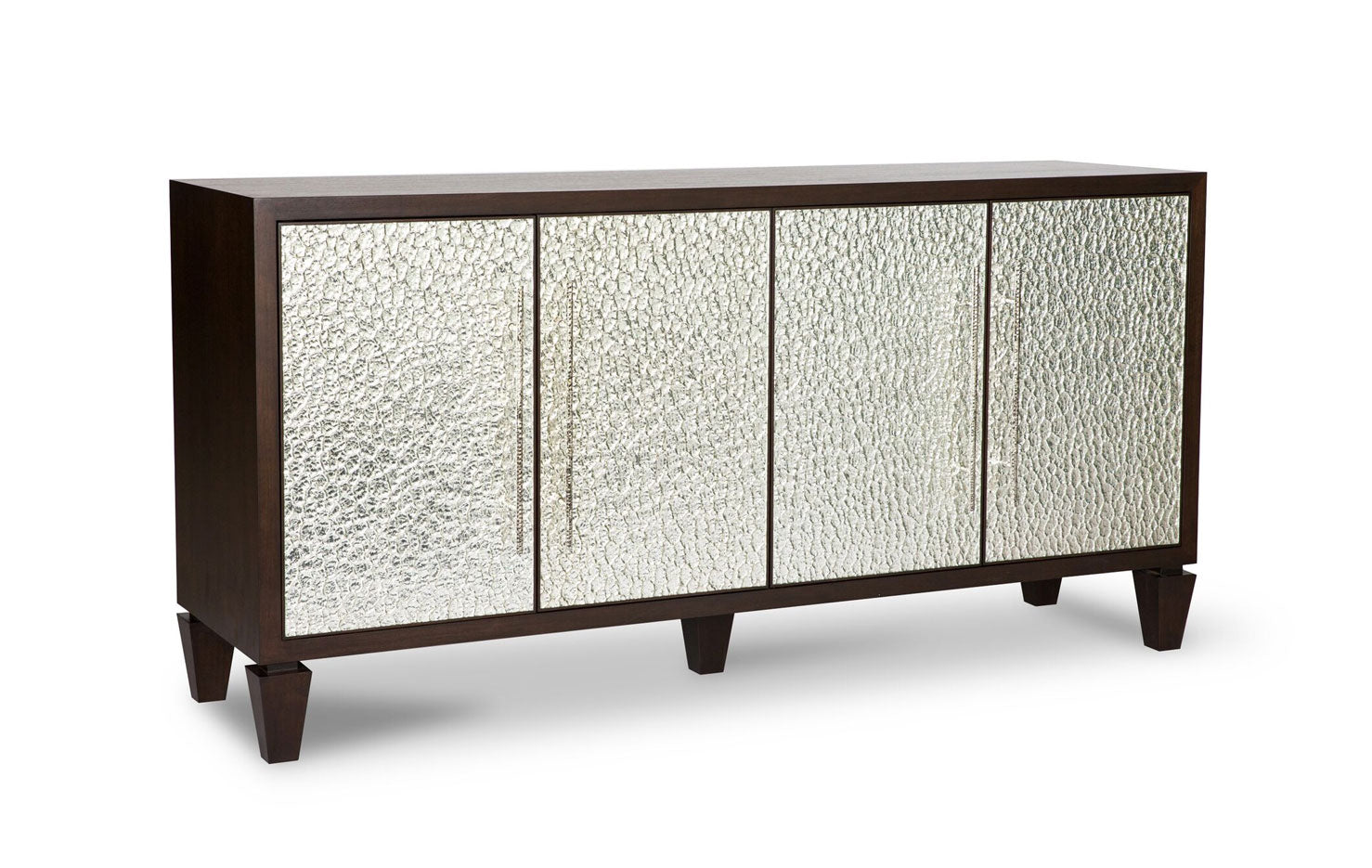 CASEGOODS FEATURE: All Erinn V. case goods are made to order in California using only the finest woods and metals, resulting in a richness of materials. Erinn V.’s modern-classic designs are highlighted by a range of fine details: hand-hammered hardware created specifically for each piece, hand-silvered mirrors in the most unique finishes, and sophisticated finishes such as gold leaf, which is gently applied and then glazed. All Erinn V. tables and cabinets are constructed using the same methods employed by fine European craftsmen for durability and unparalleled style, with modern technology like slow-close hardware on drawers and hinges. Erinn V. furniture is customizable for a one-of-a-kind feel, poised to be an heirloom of the future.