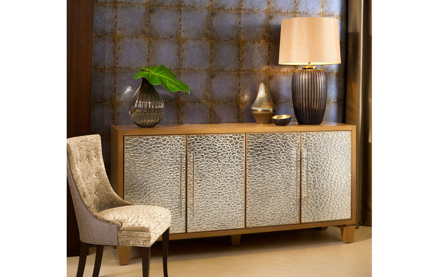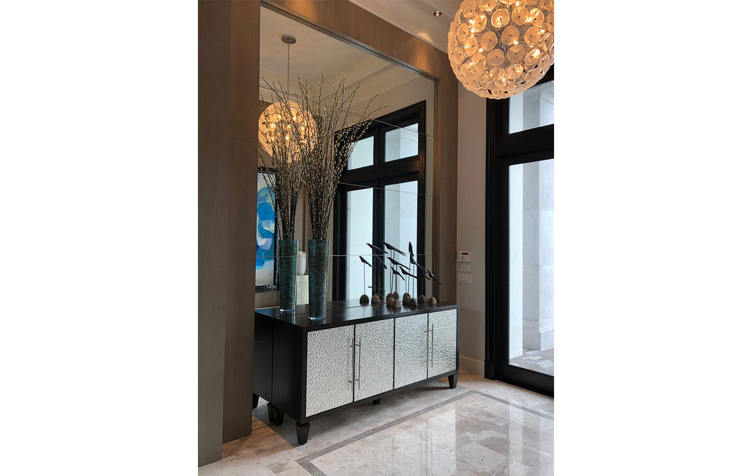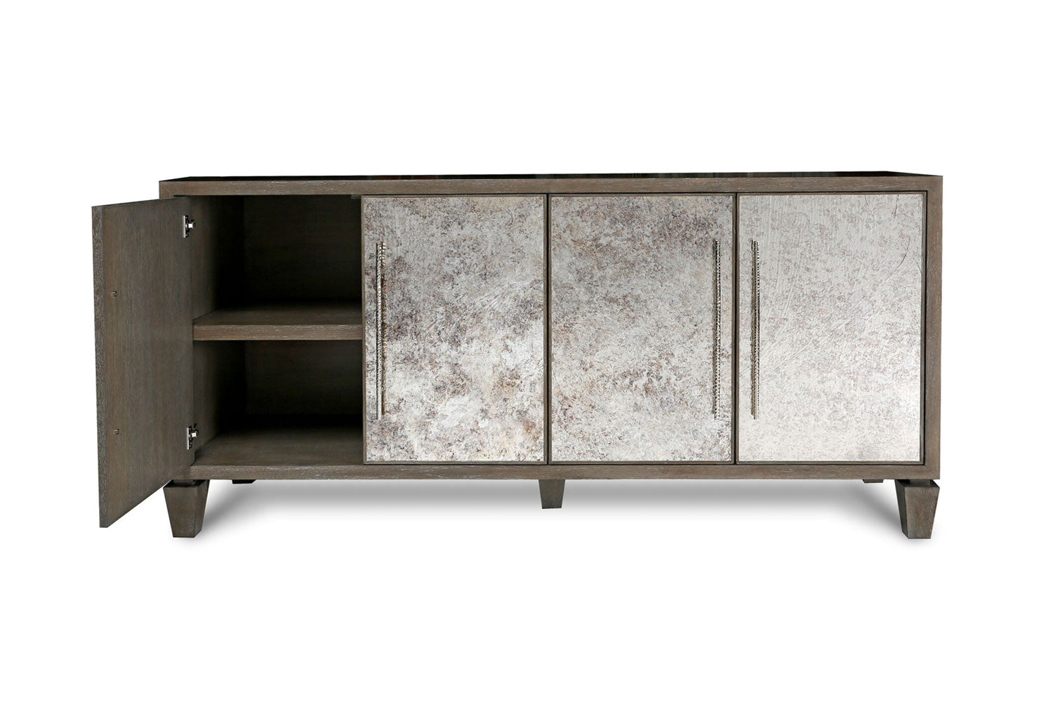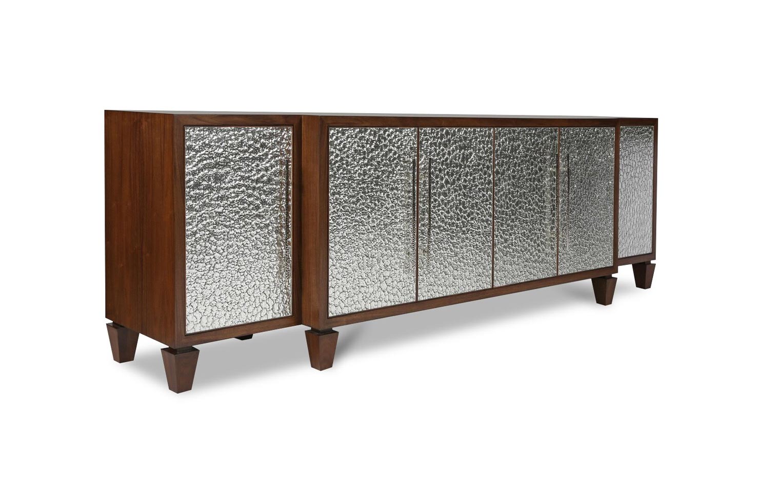 CASEGOODS FEATURE: All Erinn V. case goods are made to order in California using only the finest woods and metals, resulting in a richness of materials. Erinn V.’s modern-classic designs are highlighted by a range of fine details: hand-hammered hardware created specifically for each piece, hand-silvered mirrors in the most unique finishes, and sophisticated finishes such as gold leaf, which is gently applied and then glazed. All Erinn V. tables and cabinets are constructed using the same methods employed by fine European craftsmen for durability and unparalleled style, with modern technology like slow-close hardware on drawers and hinges. Erinn V. furniture is customizable for a one-of-a-kind feel, poised to be an heirloom of the future.