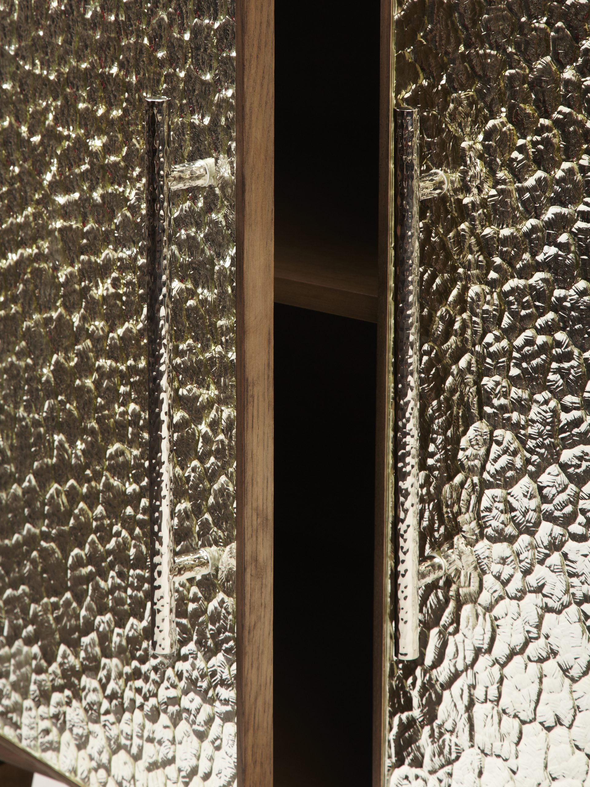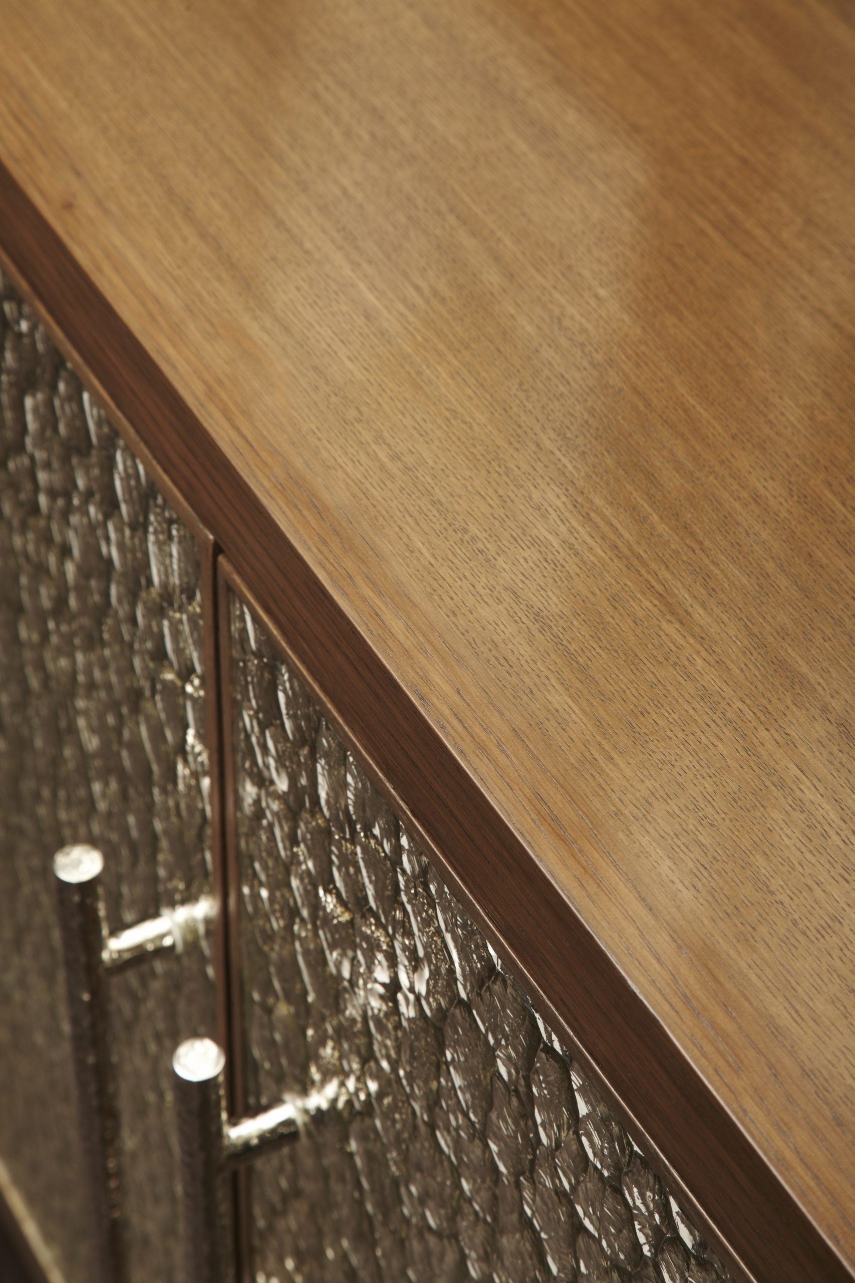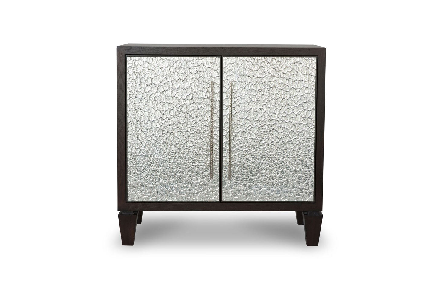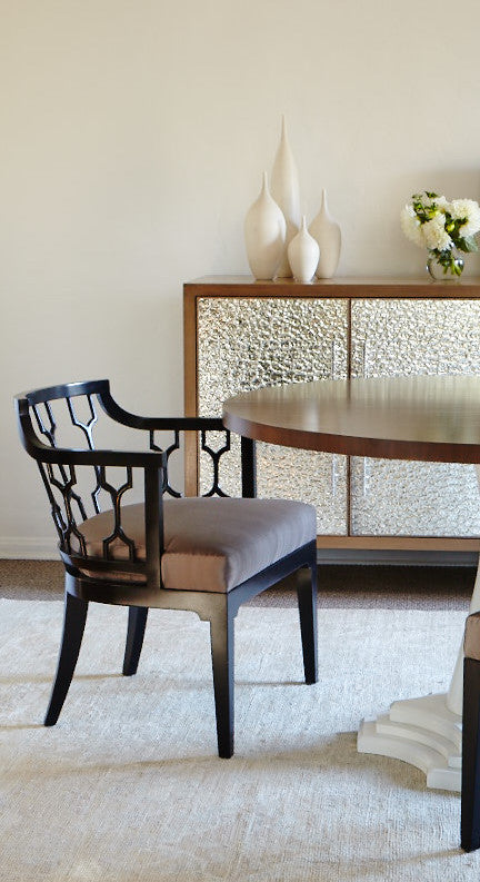 CASEGOODS FEATURE: All Erinn V. case goods are made to order in California using only the finest woods and metals, resulting in a richness of materials. Erinn V.’s modern-classic designs are highlighted by a range of fine details: hand-hammered hardware created specifically for each piece, hand-silvered mirrors in the most unique finishes, and sophisticated finishes such as gold leaf, which is gently applied and then glazed. All Erinn V. tables and cabinets are constructed using the same methods employed by fine European craftsmen for durability and unparalleled style, with modern technology like slow-close hardware on drawers and hinges. Erinn V. furniture is customizable for a one-of-a-kind feel, poised to be an heirloom of the future.