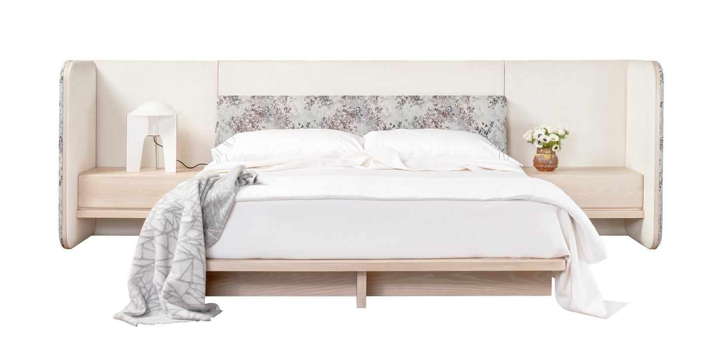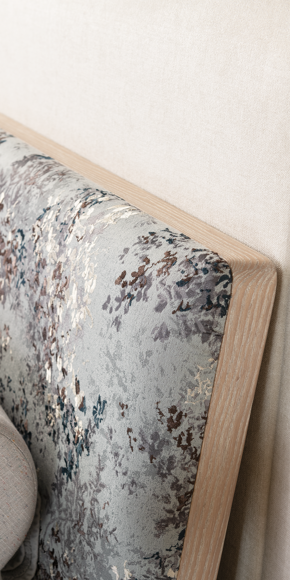 Upholstered headboard (fabric must be railroaded to avoid seams)