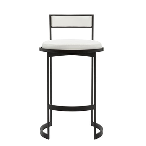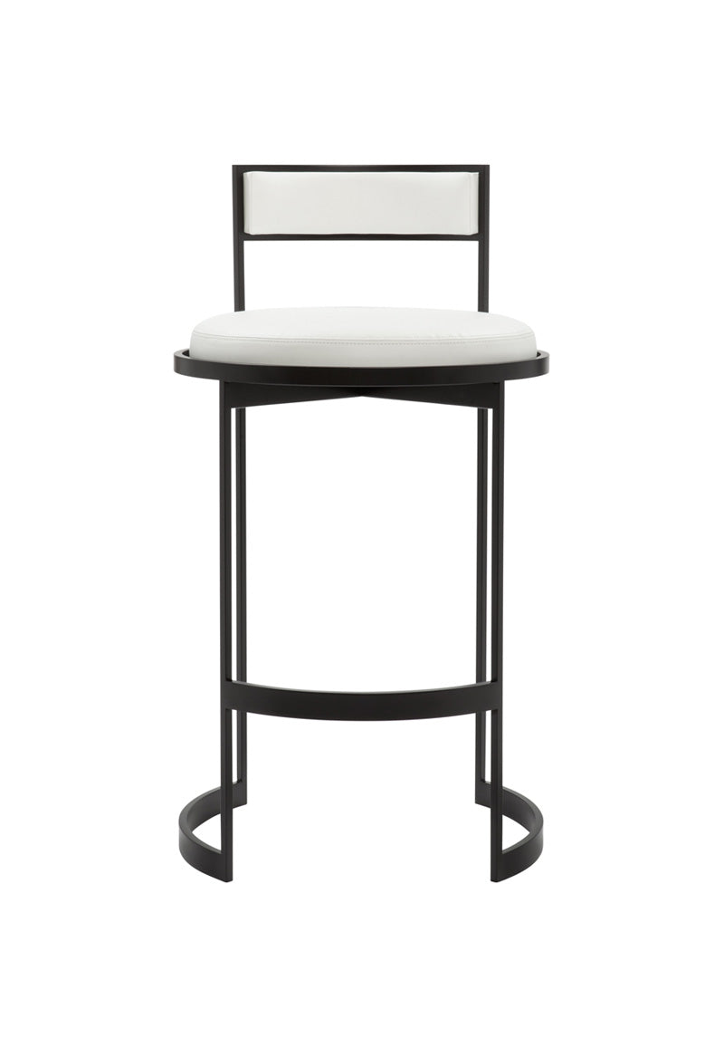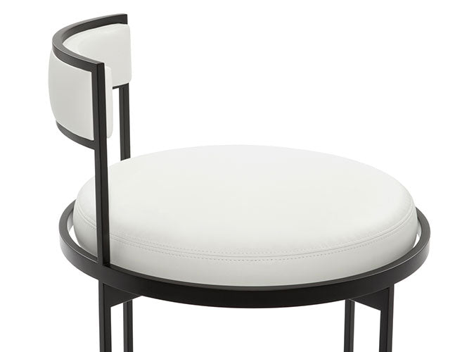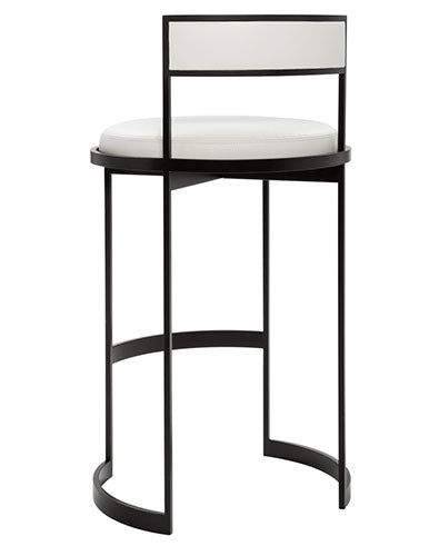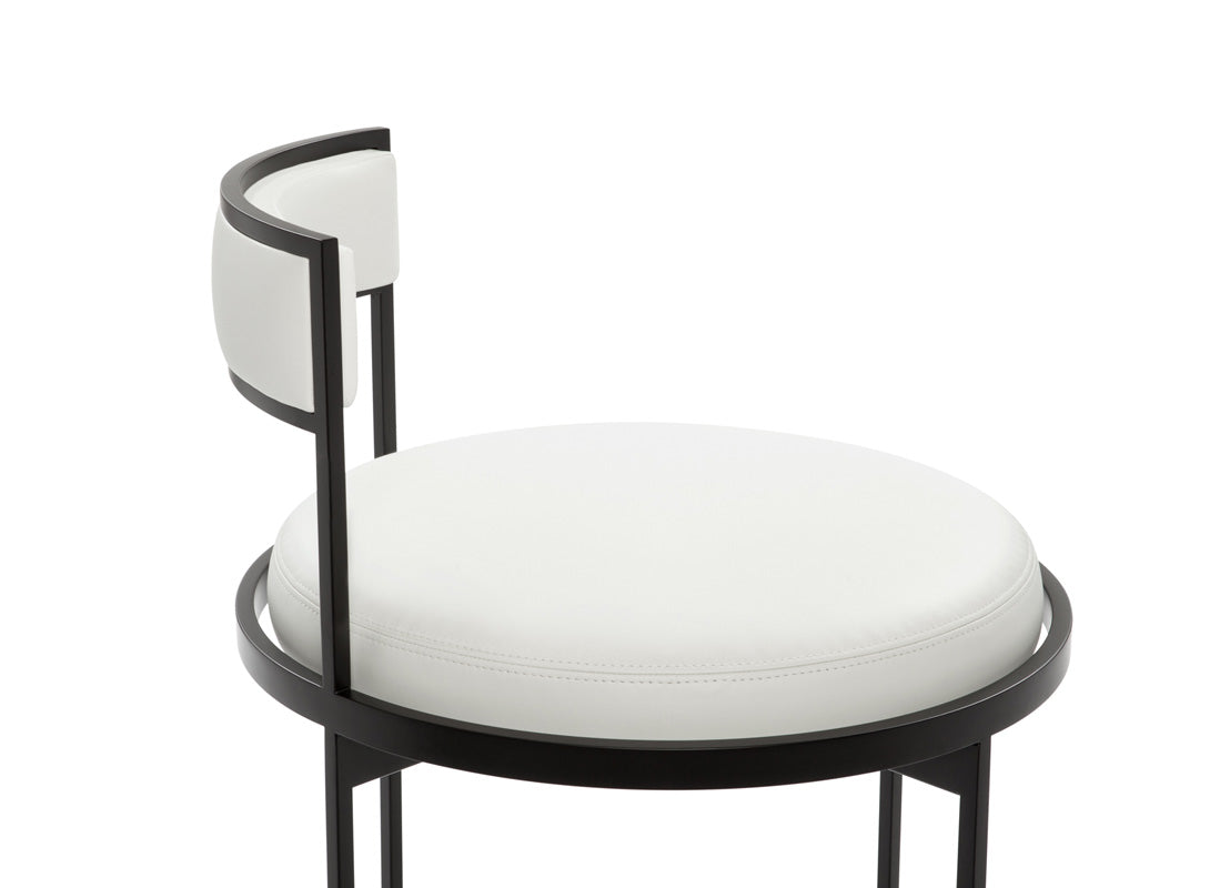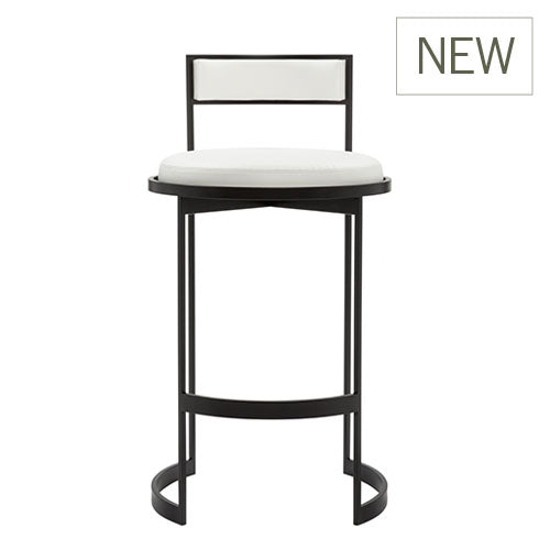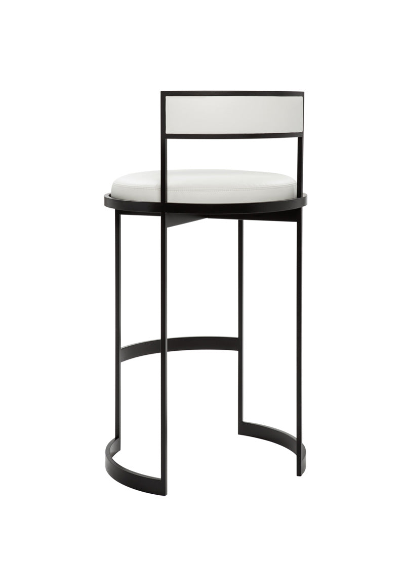 up-sized contemporary metal frame swivel stool with generous cushioned seat and backrest.